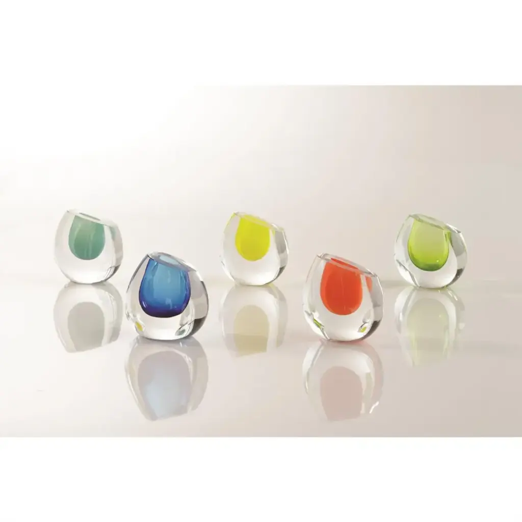 The Color Drop Vases are hand blown art glass made by artisans in Poland. Each solid clear jewel like vase has an interior cased in one of 5 different rich colors of glass. From a fashion forward perspective, Global Views offers accessories, furniture, statement lighting, and an assortment of rugs and mirrors to add beauty and joy to your home.