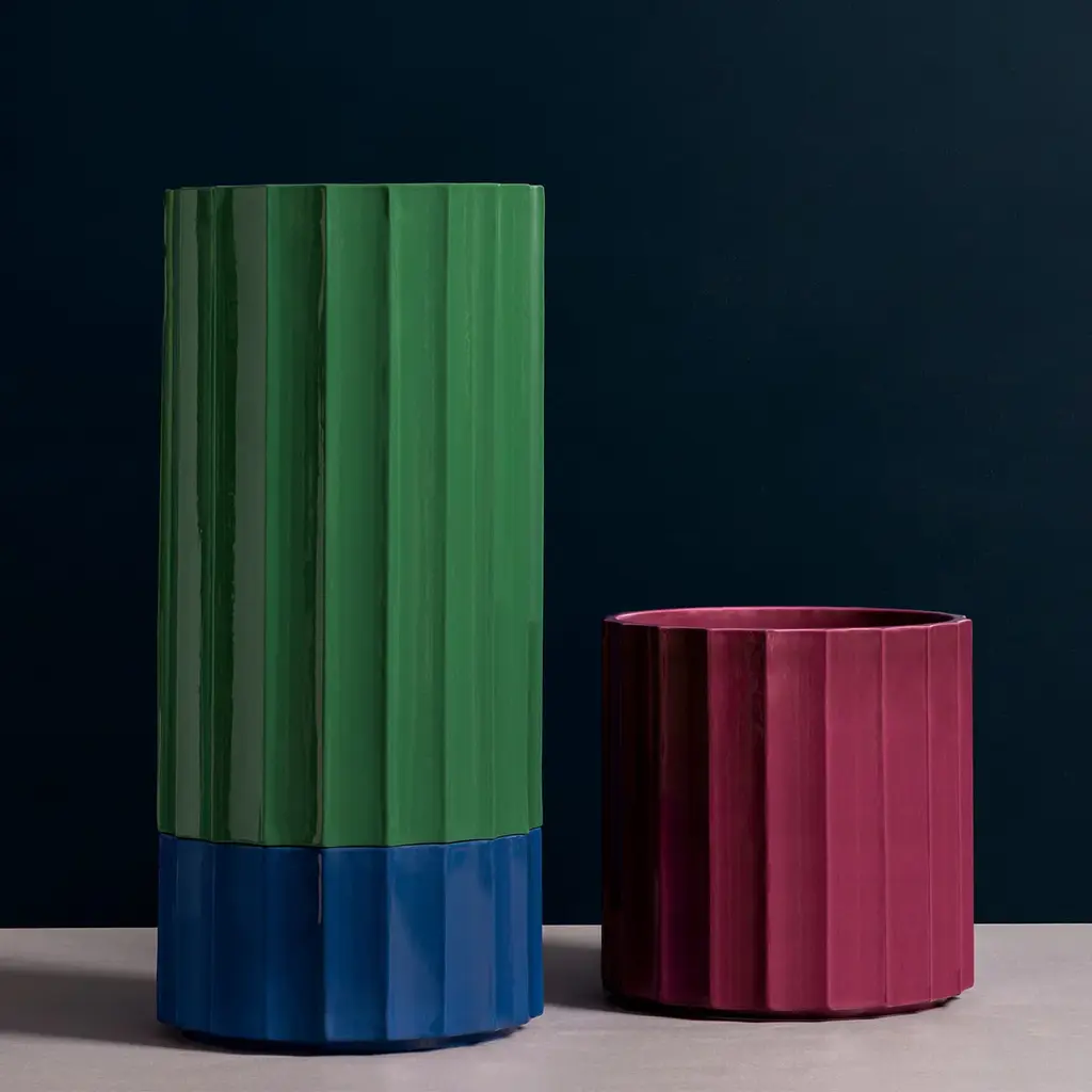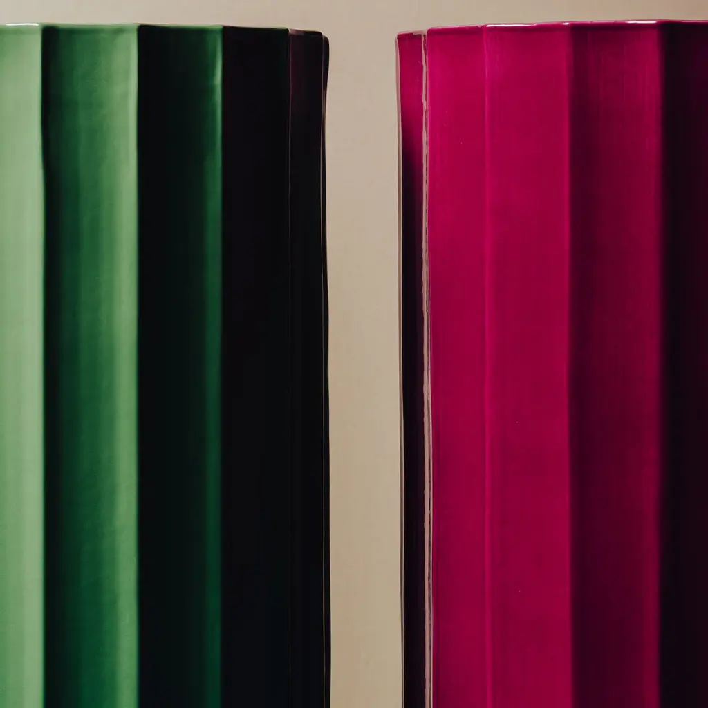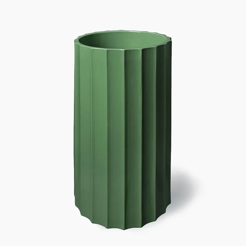 Part of the Torsi Collection, this ceramic vase is a superb synthesis of a glorious past and a vibrant present. Its channeled texture lends it its distinctive column-like silhouette, here offered in an extra-fresh shade of green. Meant to be stacked with its cylindrical twins from the same series, it makes for a vivid addition to an otherwise dull contemporary setting.