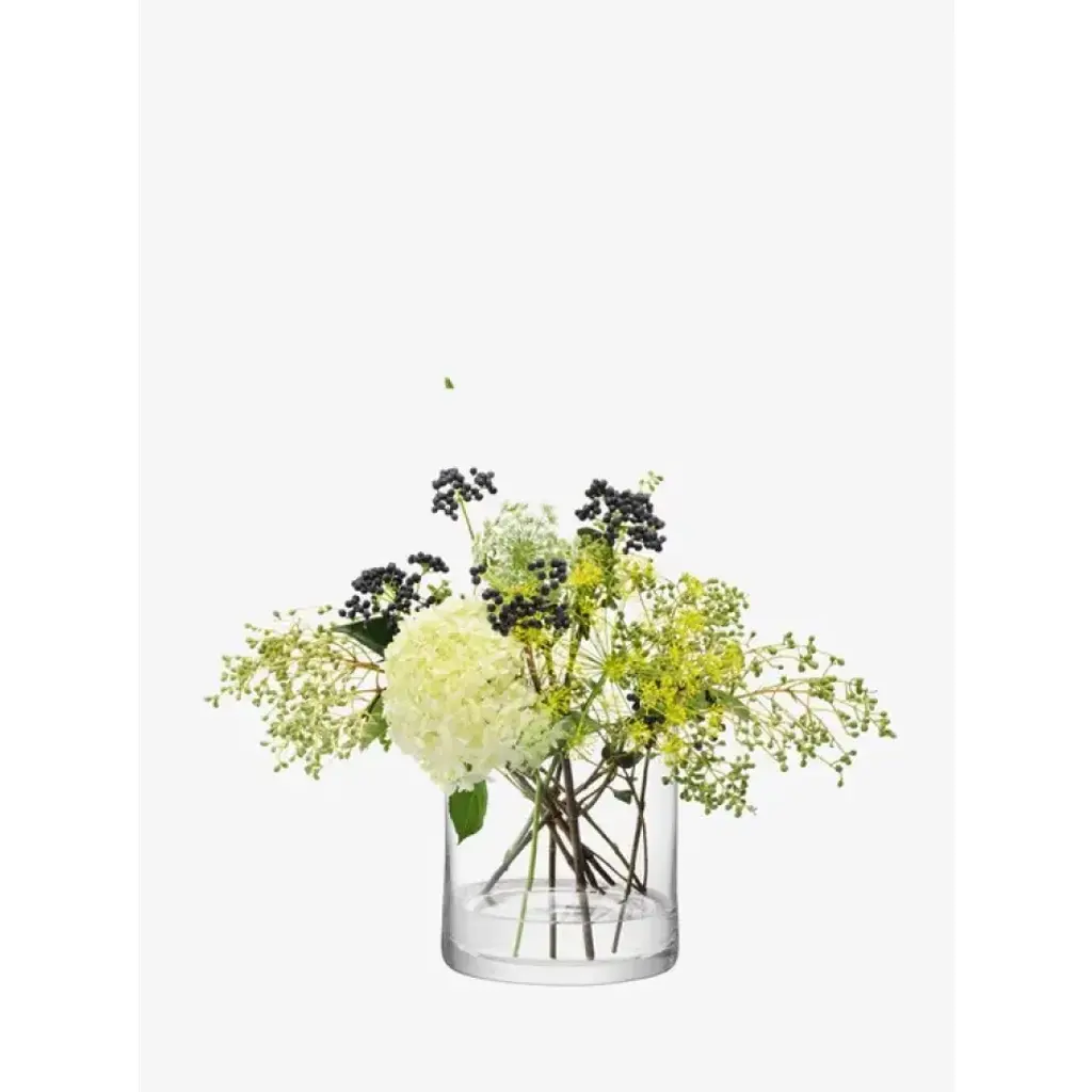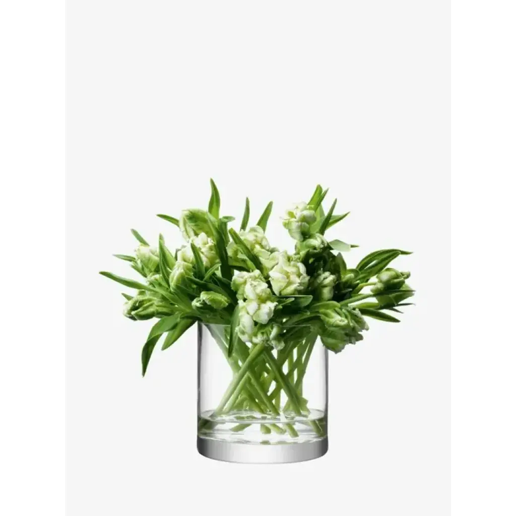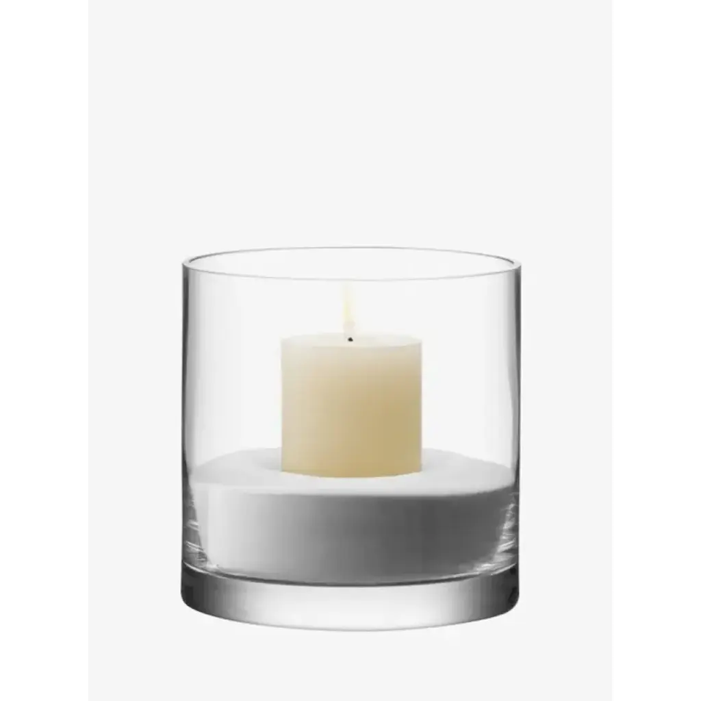 A wide vase/lantern with heavy base, thick walls and a flat, polished rim. Mouth blown and hand finished by skilled glassblowers. Use as a vase for short stems or as a small lantern.