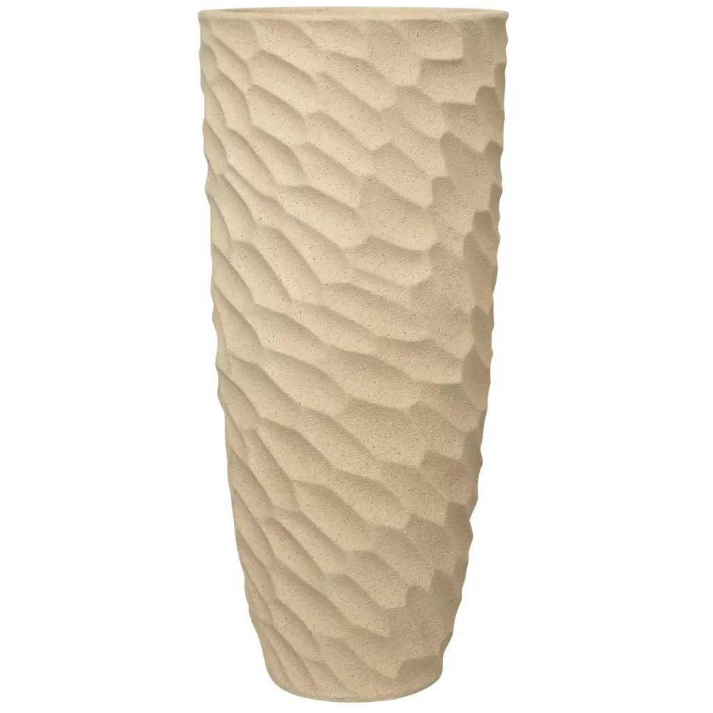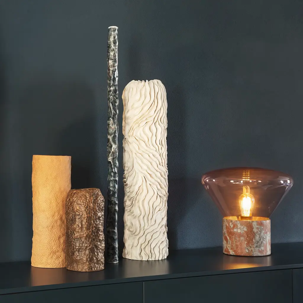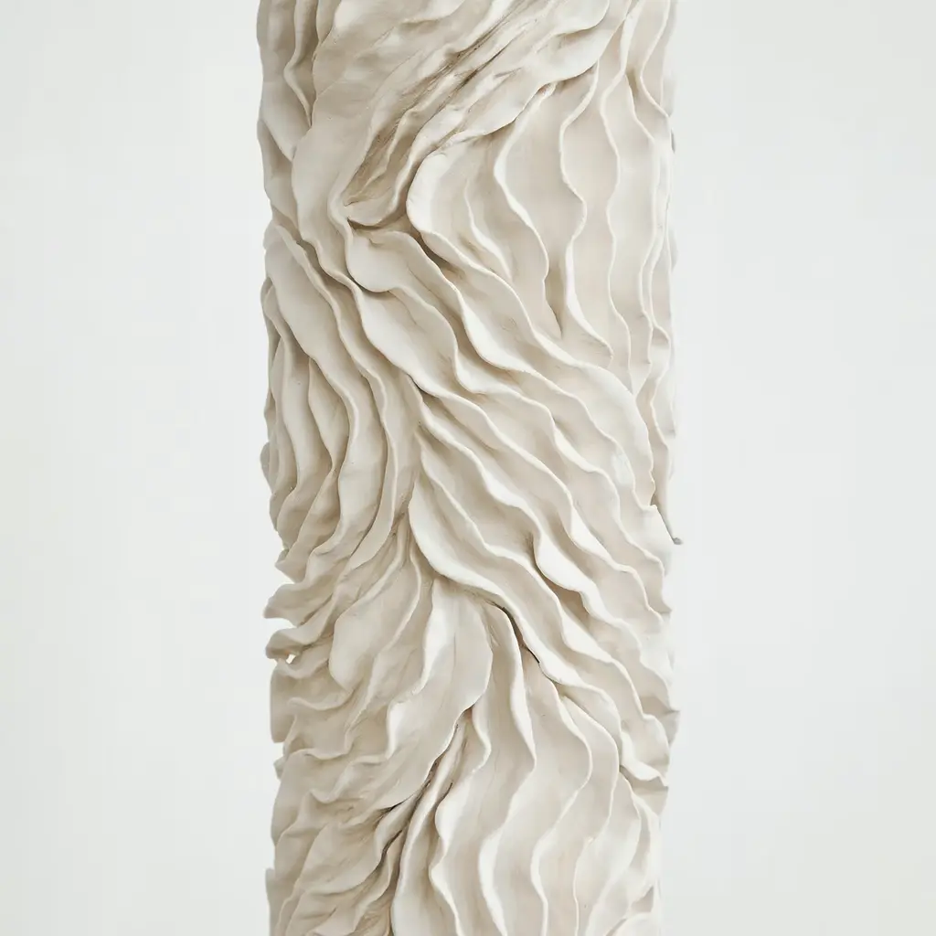 Inspired by the slow and unpredictable process leading to a stalagmite, this luminous limited-edition ceramic vase boasts an eccentric design of creased grooves seemingly traced by a water drop carrying minerals for a long period of time. No detail of its silhouette is predetermined, staying faithful to how a simple air blast can diver a drop's path towards a different direction. Each piece is unique.