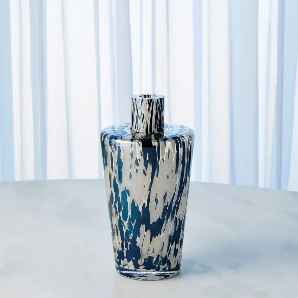 The Shoulder Vase is mold-formed blown Polish art glass with black and beige flecks of colored glass. Each is individually created, so colors may vary. From a fashion forward perspective, Global Views offers accessories, furniture, statement lighting, and an assortment of rugs and mirrors to add beauty and joy to your home.