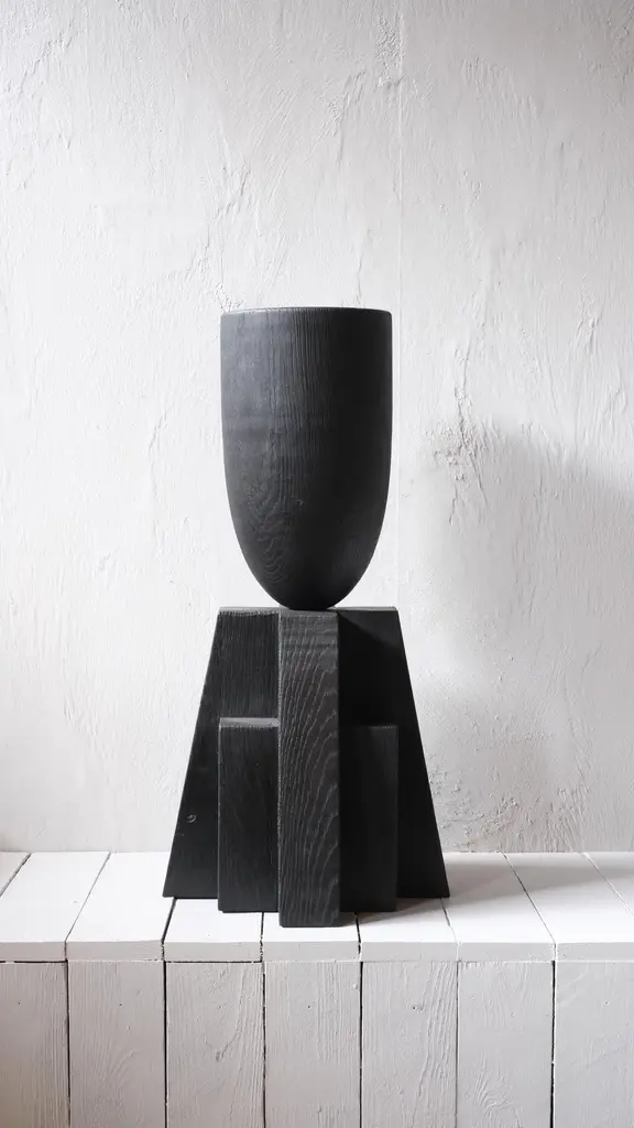 Contemporary Burnt Iroko Wood Goblet Vase With Geometric Base By Arno Declercq