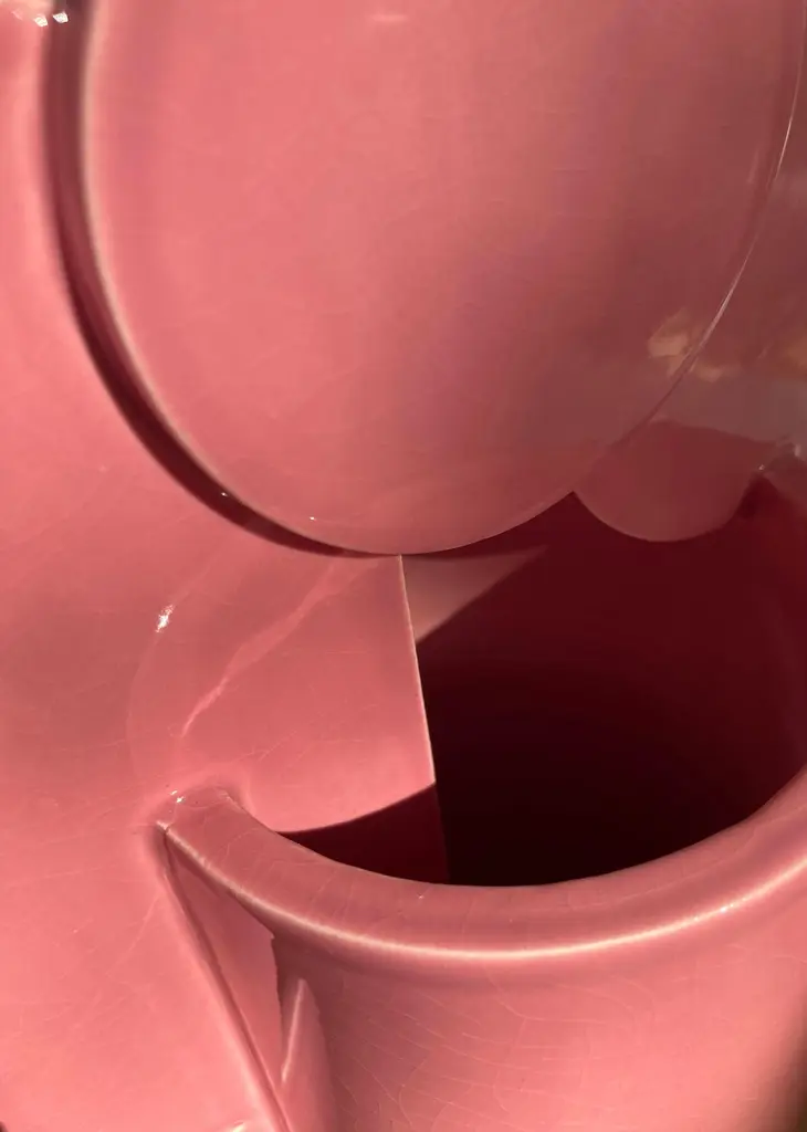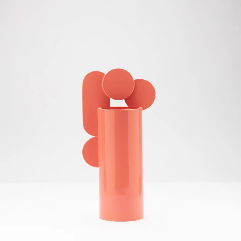 Lovers In Pink, a renowned artwork by Marc Chagall, serves as the inspiration for this polished ceramic vase from the Bubble Family Collection. Showcasing arched, circular shapes, the decorative elements enriching the vase's cylindrical body contribute to its organic dynamism, which adds an effortless touch of glamour to contemporary interior.without a doubt for me "the lovers" is my favorite vase not to say that it is the perfect vase. I almost have a veneration for this vase and when I build it a special mood always assails me.It is all the details that make it so important, there are two kissing figures, the color is elegant pink with something antique, and the surface is so shiny , Io amo Gli innamorati.