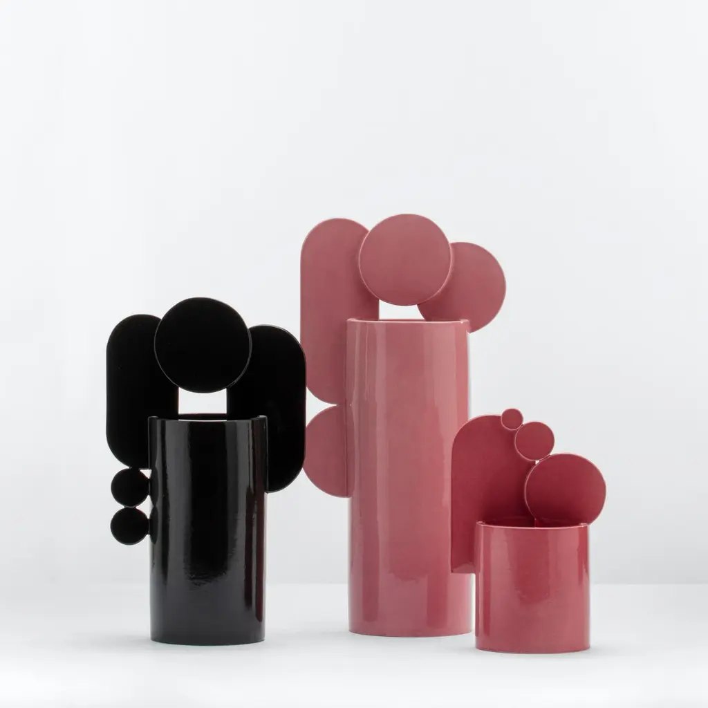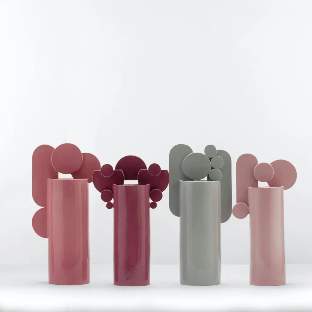 Contemporary Cuorecarpenito Pink Ceramic Vase Bubble Family Collection