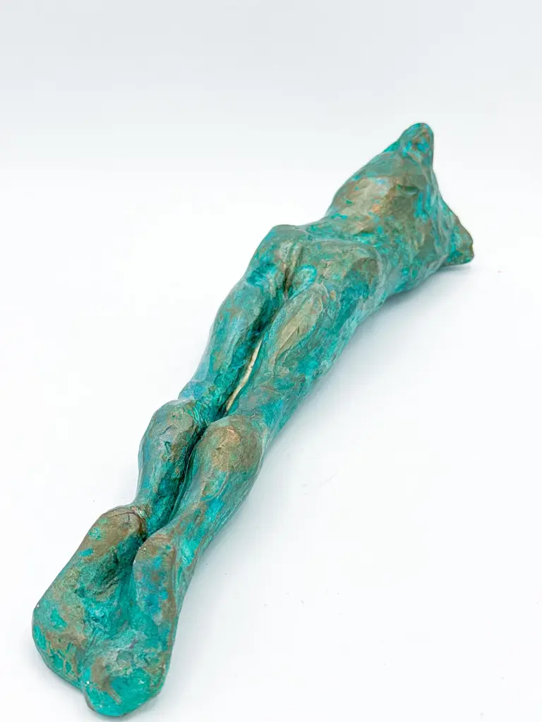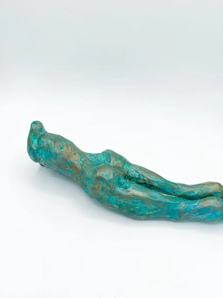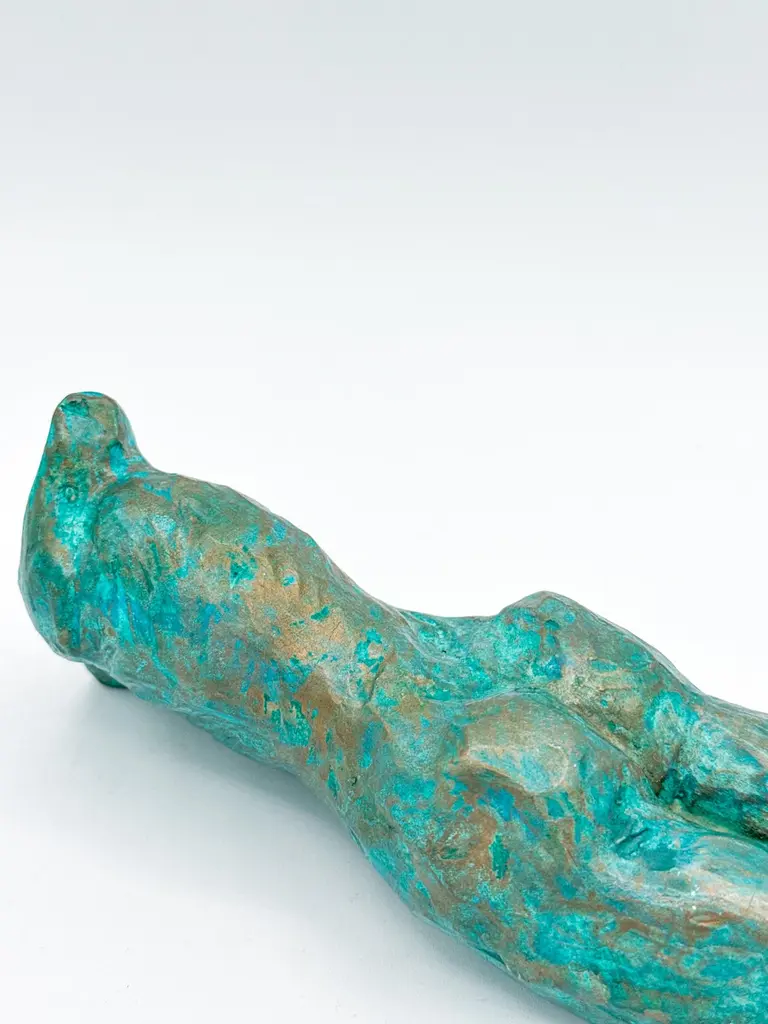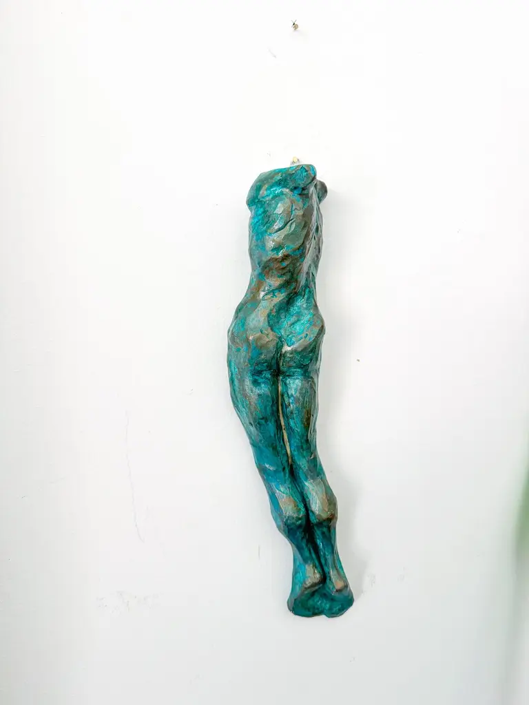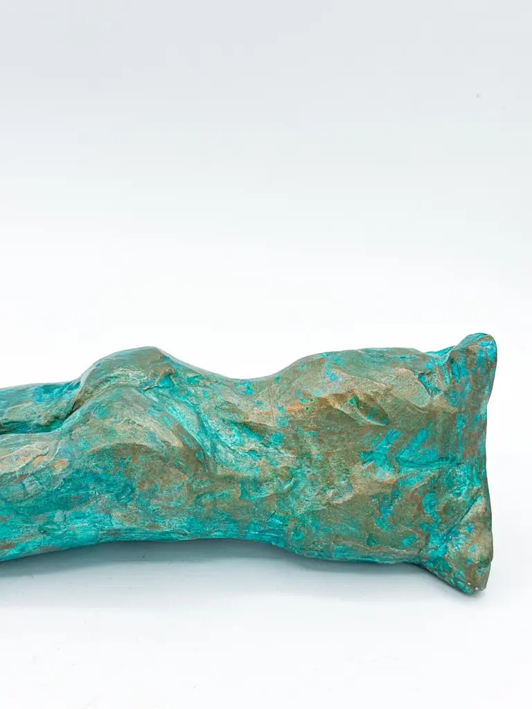 This contemporary figurative wall-mounted sculpture by artist Animism beautifully merges art and function. Featuring a stylized male torso with strong anatomical details, the piece also serves as a sculptural wall vase—perfect for holding a single flower or botanical stem. Rich in texture and finished in a captivating turquoise patina with bronze undertones, it brings depth, warmth, and sensuality to any interior.Signed by the artist at the base, this mixed media male body sculpture is a one-of-a-kind art object designed to hang vertically. Ideal for modern interiors, curated gallery walls, or Brutalist-inspired decor, it adds dimension as a functional vase and as a conversation-starting collectible.Explore our curated selection for more exceptional pieces. Each order is meticulously packed and shipped within 24–48 hours to ensure a secure and timely delivery.