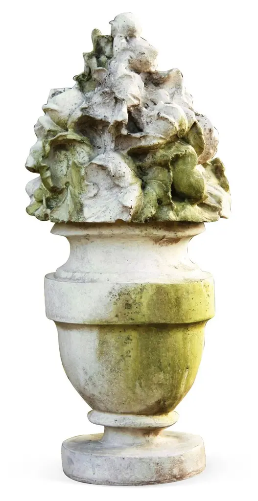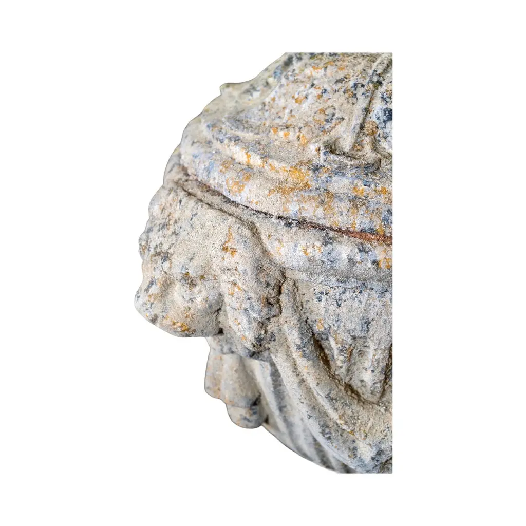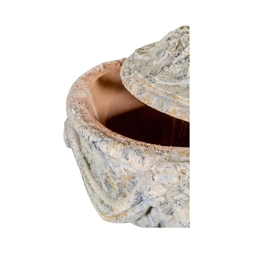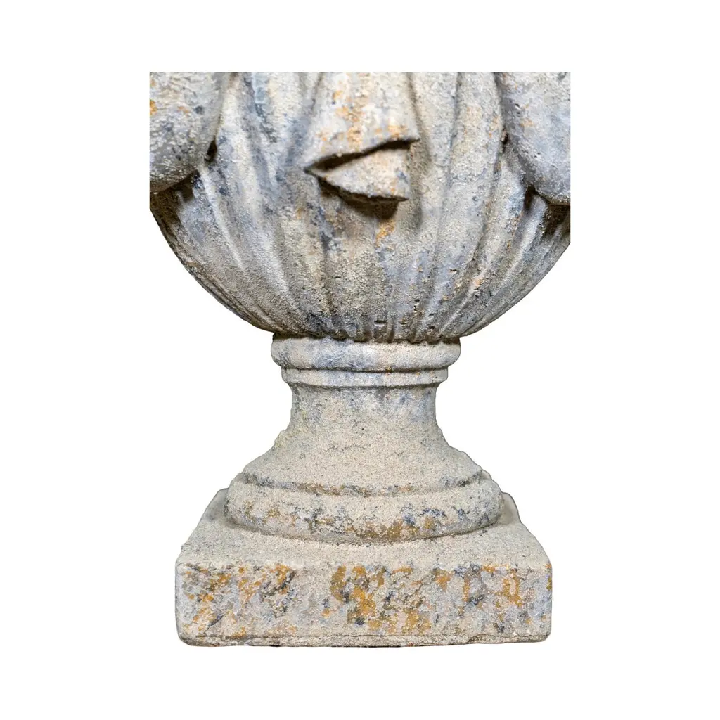 Crafted in France from reconstituted stone, this lidded urn offers the timeless elegance of classical design with the durability of contemporary craftsmanship. Designed with draped swag motifs on one side and carved lion heads on the reverse, the piece evokes the grandeur of traditional European garden ornamentation. Its weathered finish and aged patina create the look of a centuries-old artifact, making it a striking addition to both indoor and outdoor spaces.