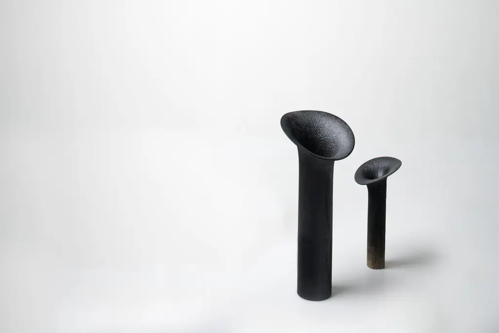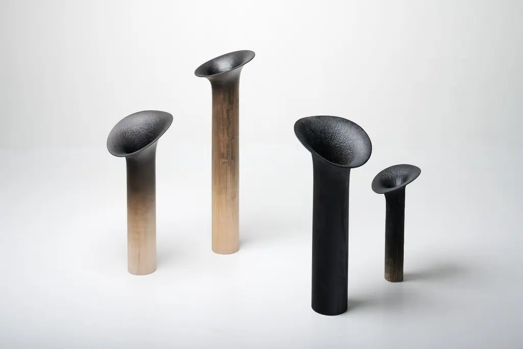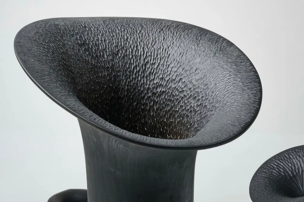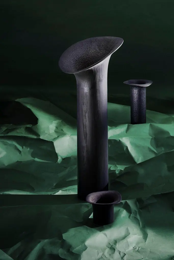 SISIN (finnish for “quiddity”) is a sculptural hand carved vessel series where the forms and textures are inspired by exceptional beauty and necessity of mushrooms.Hollow pedestals give the pieces lightness and creates illusion regarding to the look. One of a kind carving texture is flowing from the sides to inside and finally disappearing to the bottom.All the pieces are made by hand in Fiskars village, FinlandDesign and made by Antrei HartikainenMeasures: Height 100cmDiameter 40cm Material: Linden woodTreatment: Stained and lacquered.