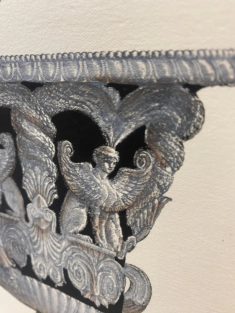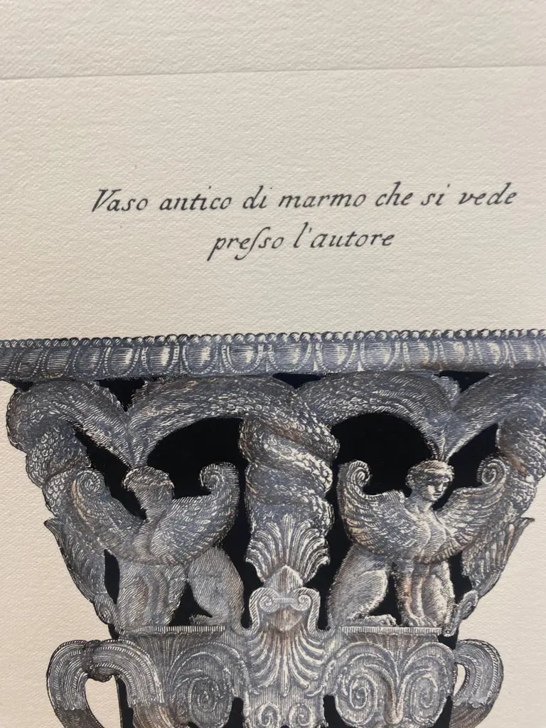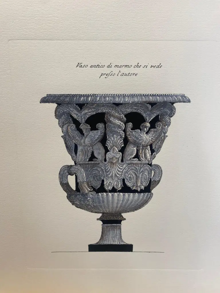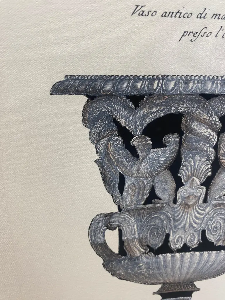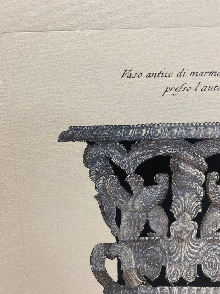 Very original reproductions of decorative vases from important English mansions, printed on a hand press on 100% cotton engraving paper.Completely handpainted with a cream wash, umber highlights, and matte black details.Available in five different vase shape.Paper dimension 33 x 35 cmSlab rebate dimensions 20 x 25 cm.(Cod. 147) ARTECORNICI design produces hand colored art prints, artisan frames, lightings, decorative accessories and furniture . All our products are designed and produced in Florence by Italian master craftsmen.