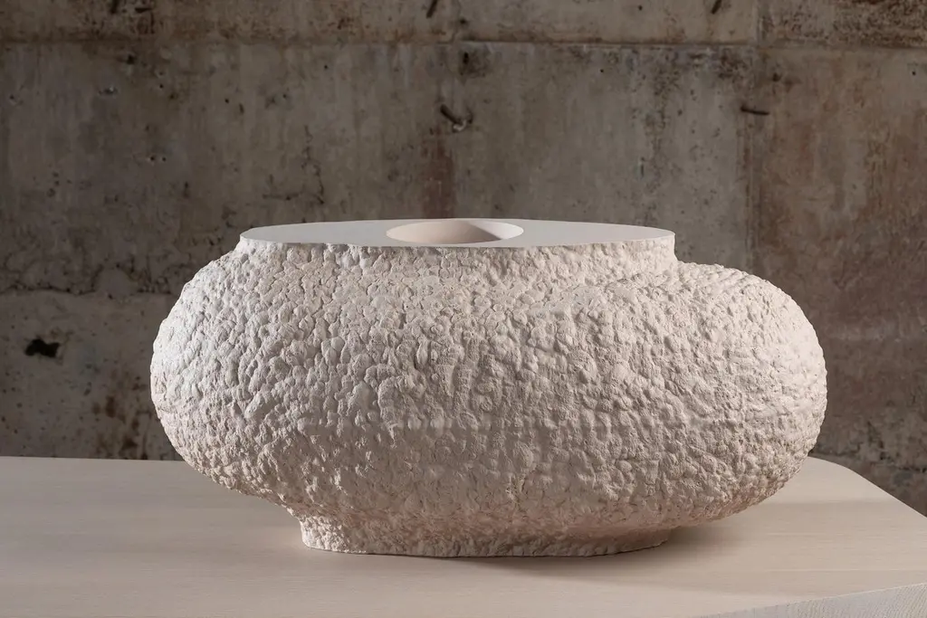 Contemporary Jesmonite Vessel - Acacia by Malgorzata Bany.ACACIA vessel takes inspiration from daily cleansing rituals and the process of natural decay. The construction of these pieces is a very intuitive process of carving away the material and by doing so the foam mould is created.In such way every mould can be used only once and every piece is complitely unique. In addition, the richly textured body of acacia vessel has been inspired by Japanese Tsukubai- ceremonial washbasins located at the entrance of holy places for visitors to purify themselves.Design: Malgorzata BanyMaterial: Jesmonite stoneDimensions (in): 14.17 x 31.10 x 13.39"Dimensions (cm): 36 x 79 x H34 cmMade by hand, in United Kingdom.Crate included in the price.