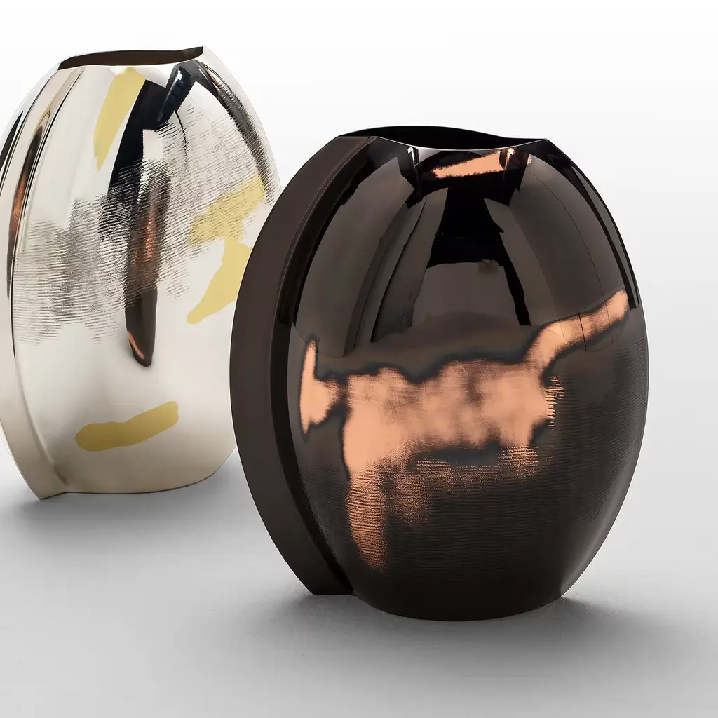 An exquisite example of refined craftsmanship, this vase is made of titanium and copper with a polished finish that adds a luminous and elegant allure to this unique piece of decor. Part of a numbered series, this vase makes a splendid gift on any occasion.