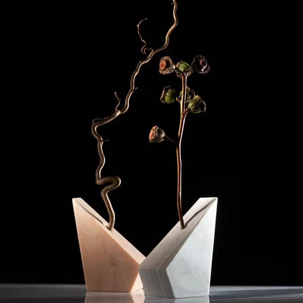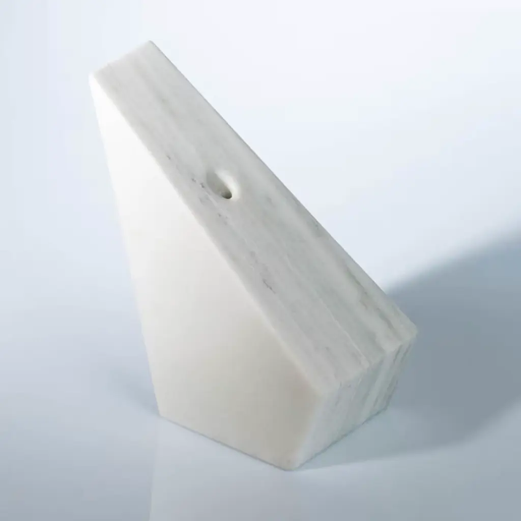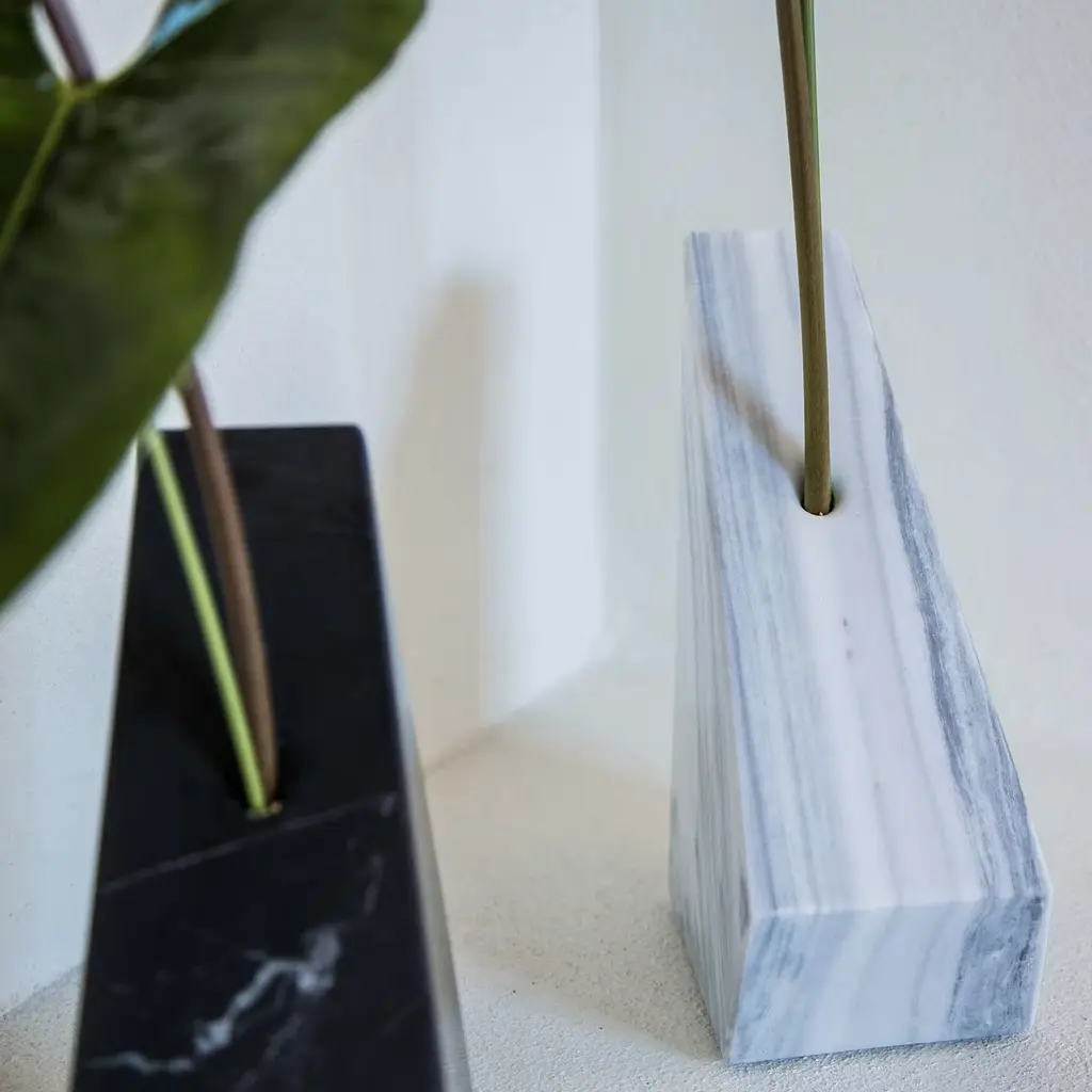 Part of the Convivio collection introduced at Milan Design Week 2018, this stunning vase is a celebration of contemporary design and traditional craftsmanship. Its minimalist shape was made entirely by hand using solid Verde Prali, an Italian marble sourced in Piedmont. Boasting a polished finish on its sloping surfaces and embellished by the striking veins of the stone, this is a one-of-a-kind piece with the unique mark of objects made by hand. It is also available in black Marquina and pink Portogallo marbles.