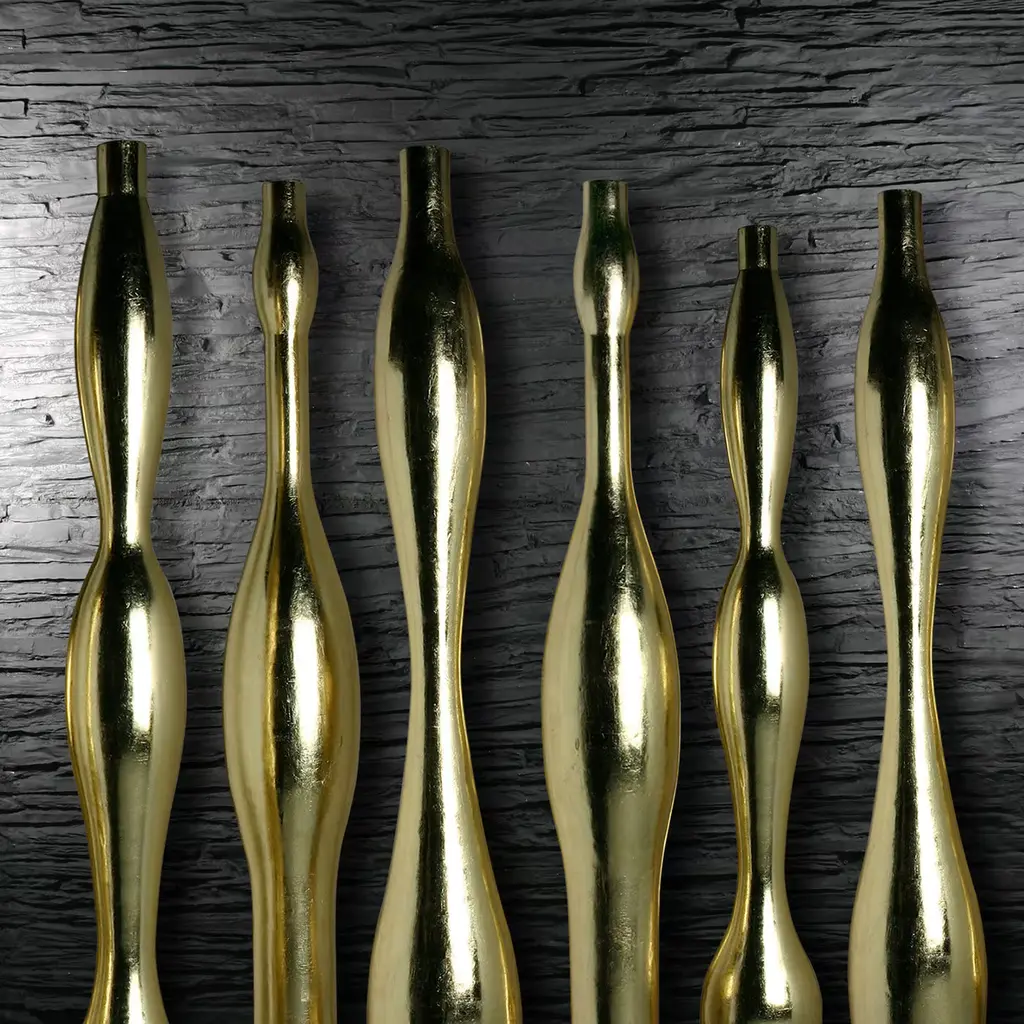 A stunning decorative piece ideally matched with the Madam Vase in the same finish, the Copine (young girl in French) boasts a tall (231cm), sinuous shape entirely crafted of resin and enriched with gold leaf, Bold and sophisticated, this extraordinary piece will bring a luxurious touch to any indoor and outdoor setting.