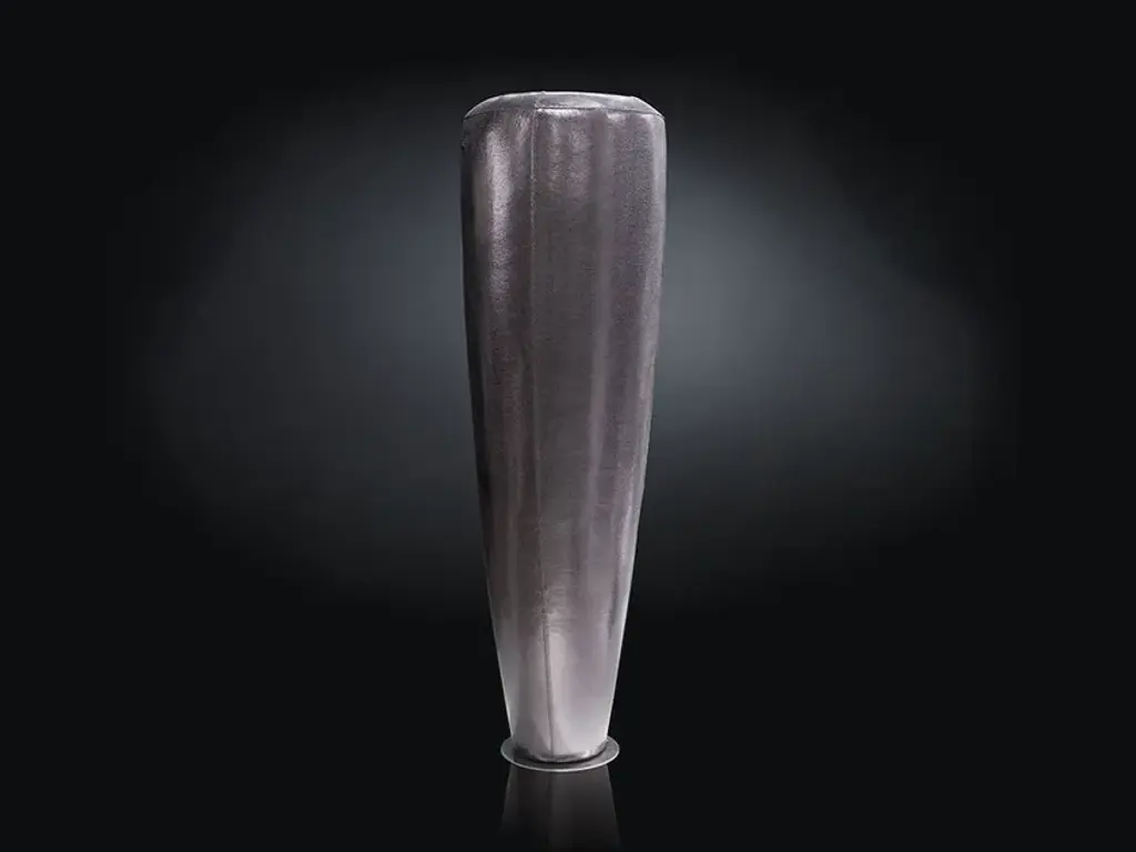 A slender and sinuous shape defines this tall and gorgeous vase, an ideal complement to an industrial-chic or contemporary interior setting. Handcrafted of resin, it is finished with silver leaf creating a mesmerizing game of lights and shadows. Please contact the Concierge for further information and customization options.
