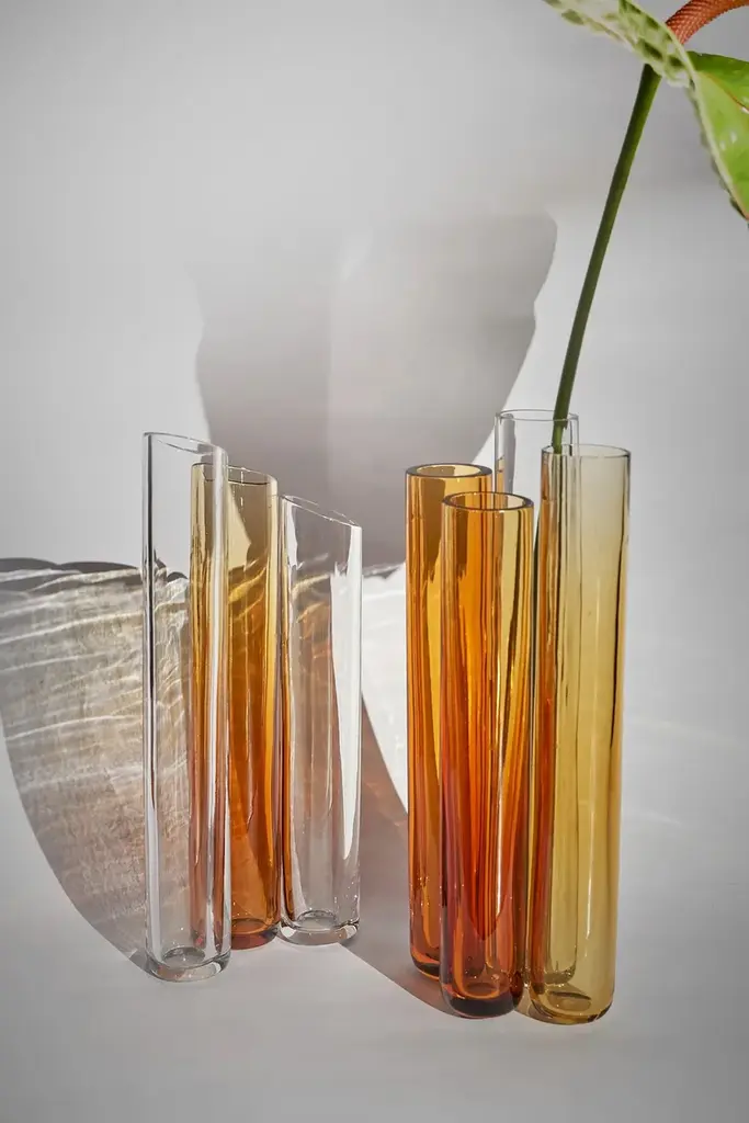 CORALLO N.2 is a blown glass vase.It can serve both as a sculptural crystal sculptural object and as a flower vase. This vase is born from the union of blown reeds originally for the creation of chandeliers, which when joined together, to give it a second life, give it the right stability. This is an authentic crystal work of art, made with the traditional artisan technique of hand blowing. The purity of the crystal reflects light beautifully, illuminating your surroundings enchantingly. The color variations and small details are testimony to the craftsmanship used in the creation of each individual piece, giving it a unique and distinctive character.Featureshand-blown and shaped in Italycolor: amber and transparentmaterial: pure lead crystal glass