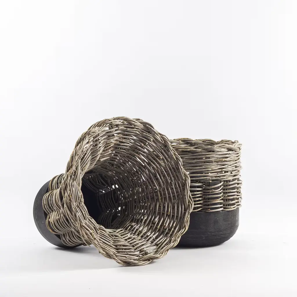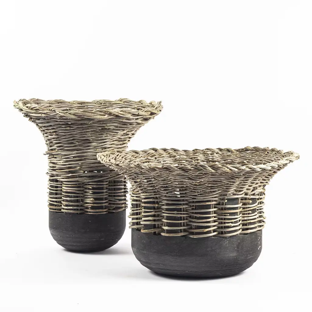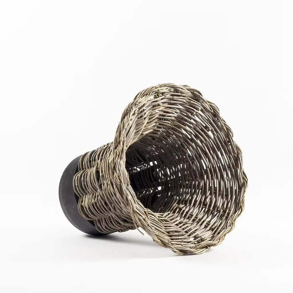 A collection of vases in Jerissa Stone and intertwined olive branches on the theme of rediscovery; recovered from a distant past and revised in a contemporary manner. An encounter between natural elements and the connection between past and present, the stone bases are machine-turned, while the woven component is, on the contrary, handmade with great patience and attention.