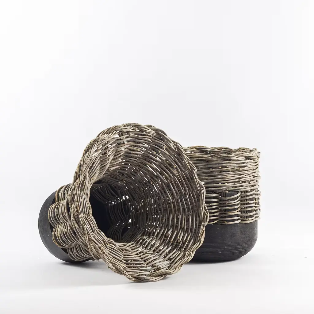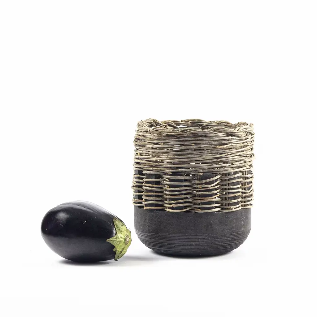 Characterized by the use of Jerissa Stone and intertwined olive branches, this collection of vases is an encounter between natural elements and the connection between past and present. The stone bases are machine-turned, while the woven component is, on the contrary, handmade with great patience and attention. This vase measures 22 cm in diameter and 24 cm in height.