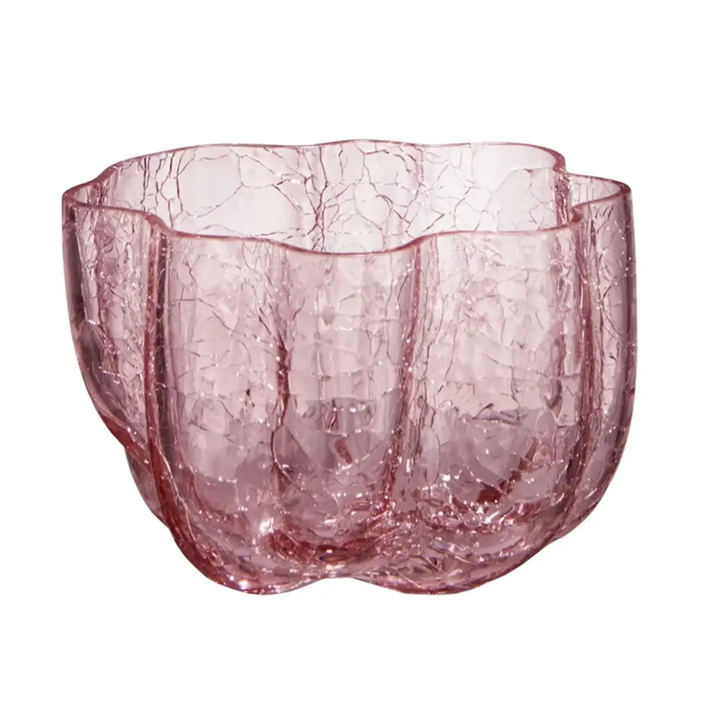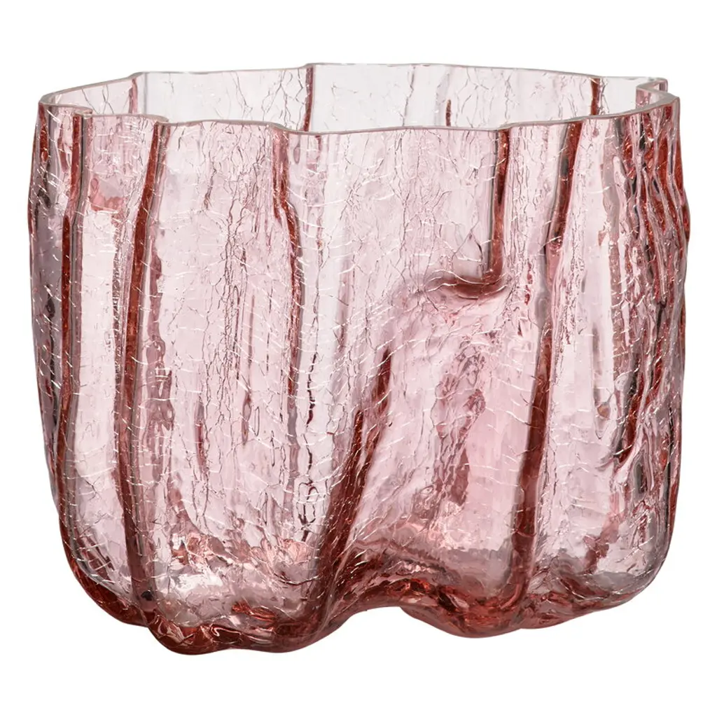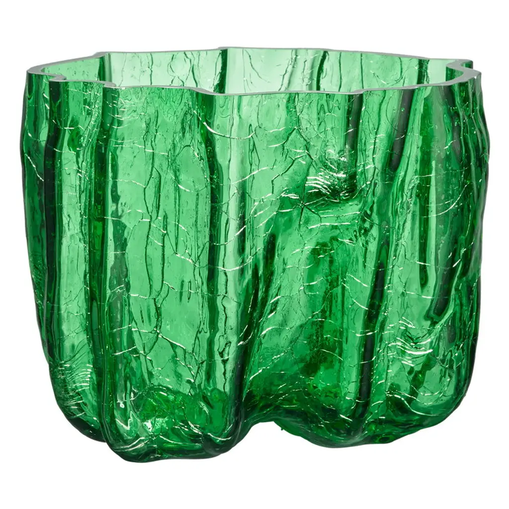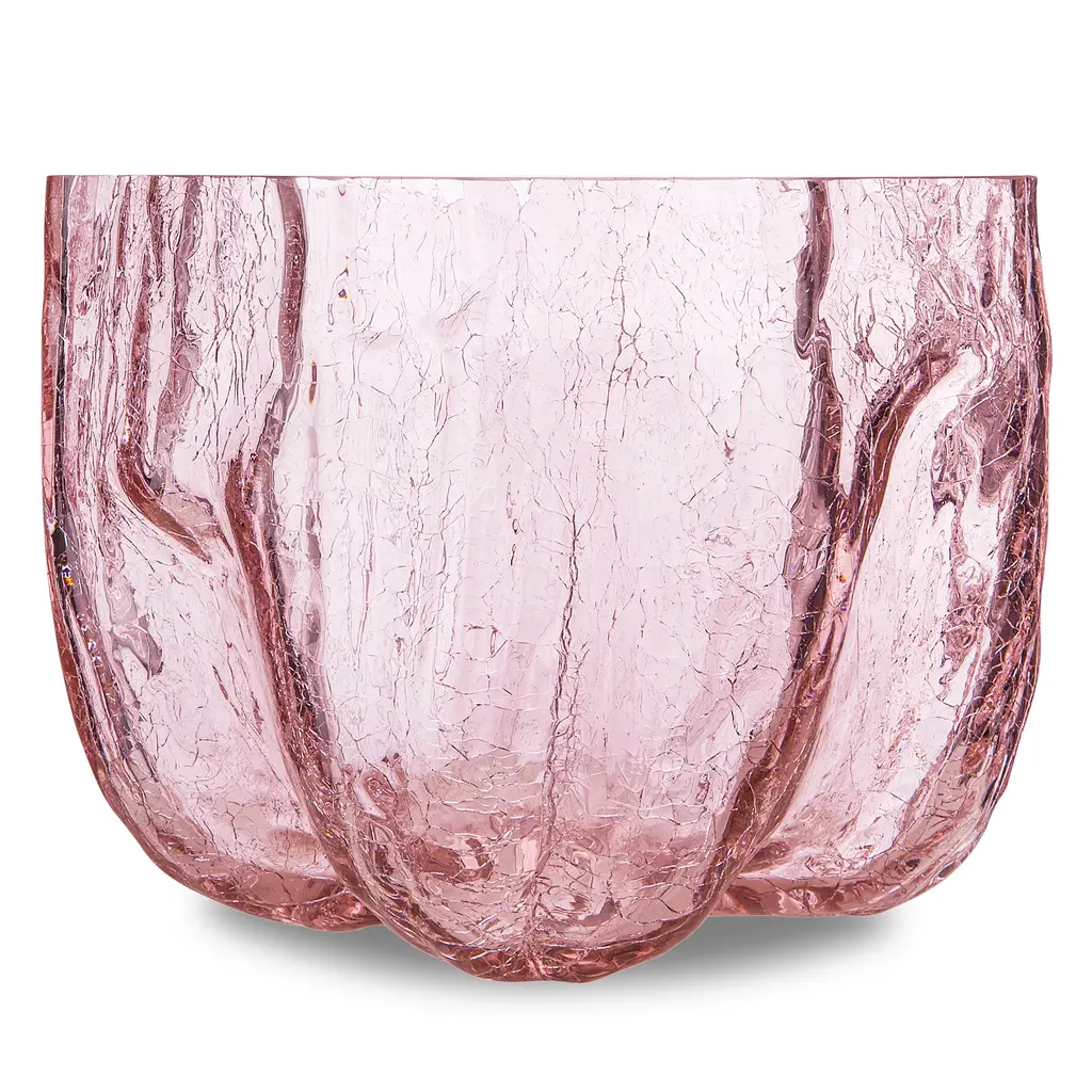 A functional art object with a crackled surface, this collection from Kosta Boda features mouth blown glass that has a distinctive, organic look befitting any style of décor.