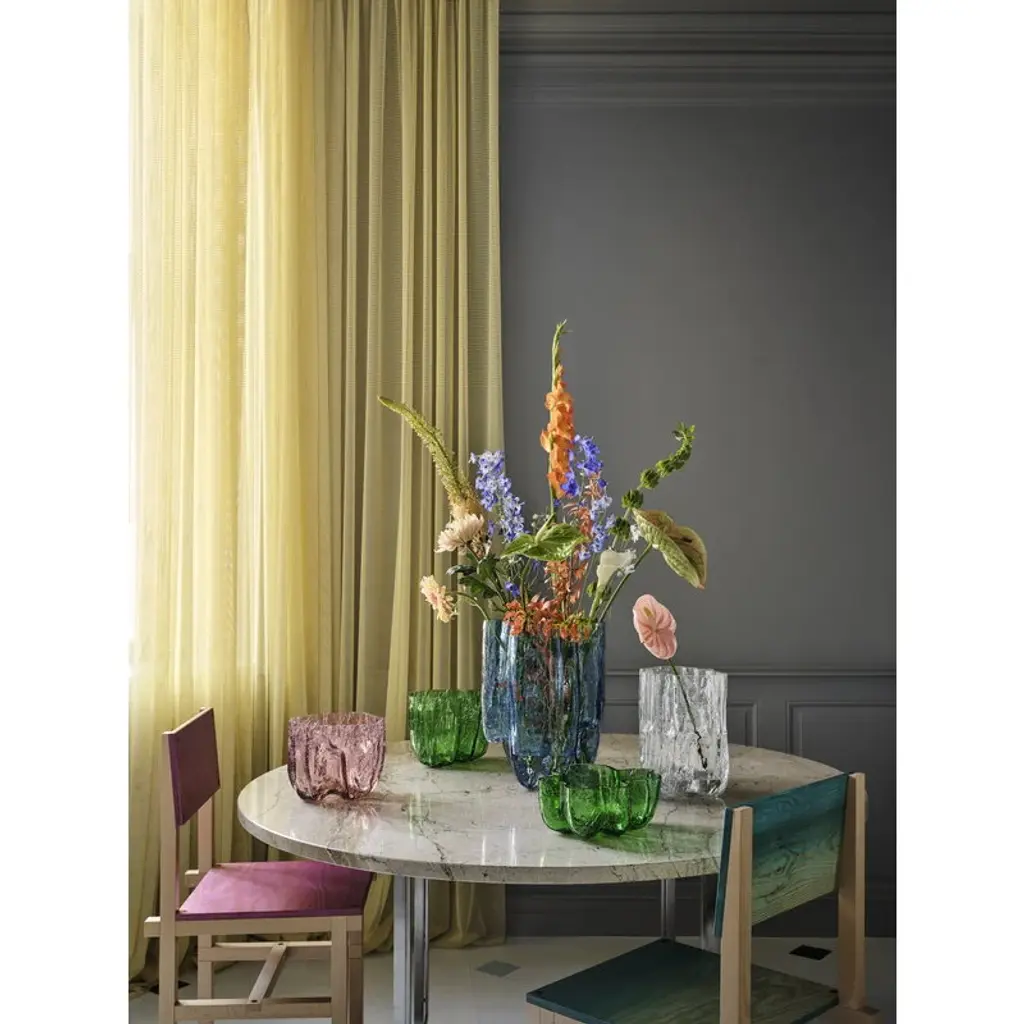 Kosta Boda's Crackle vase turns imperfections into a desired characteristic. Designed by Åsa Jungnelius, the glass vase's surface looks as if it has been broken and shattered: indeed, the Crackle vase is made using the ancient technique where the hot glass is dipped in ice-cold water. The end result is cracks and fractures in the surface of the glass – hence the name of the collection, Crackle. The varying cracks give each vase its own, totally unique look, unlike any other.