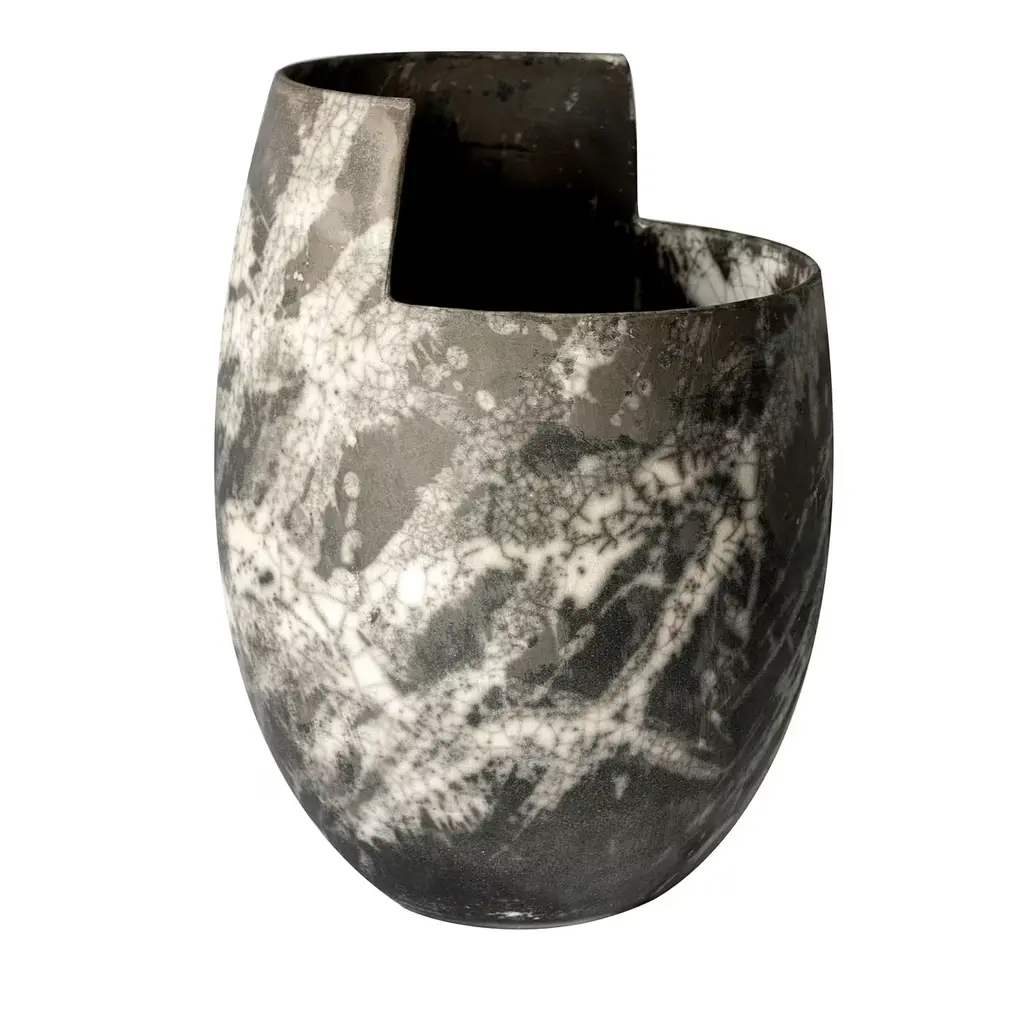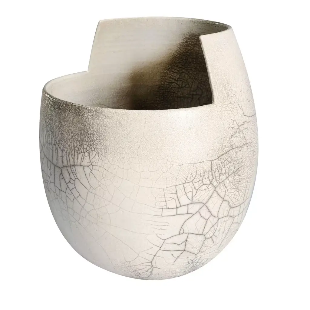 Our Crackled Footed ceramics are crafted using an ancient Japanese form of firing called "Raku." Raku ware is characterized by beautifully crackled or metallic glazed surfaces as well as blackened unglazed surfaces, both of which are the result of the unique low-firing technique. These specific pieces are created by intricately placing horse hair on the pieces while they are still hot resulting in the stunning crackled finish. From a fashion forward perspective, Global Views offers accessories, furniture, statement lighting, and an assortment of rugs and mirrors to add beauty and joy to your home.