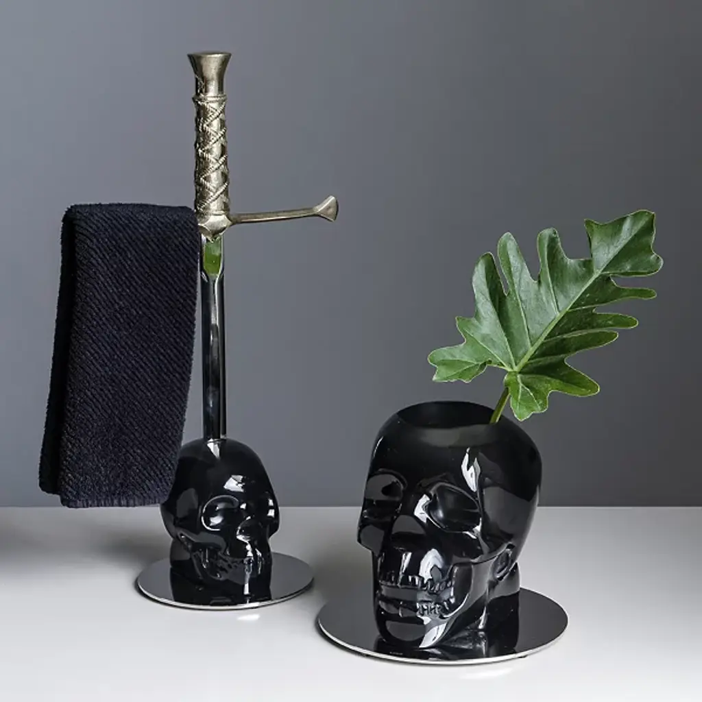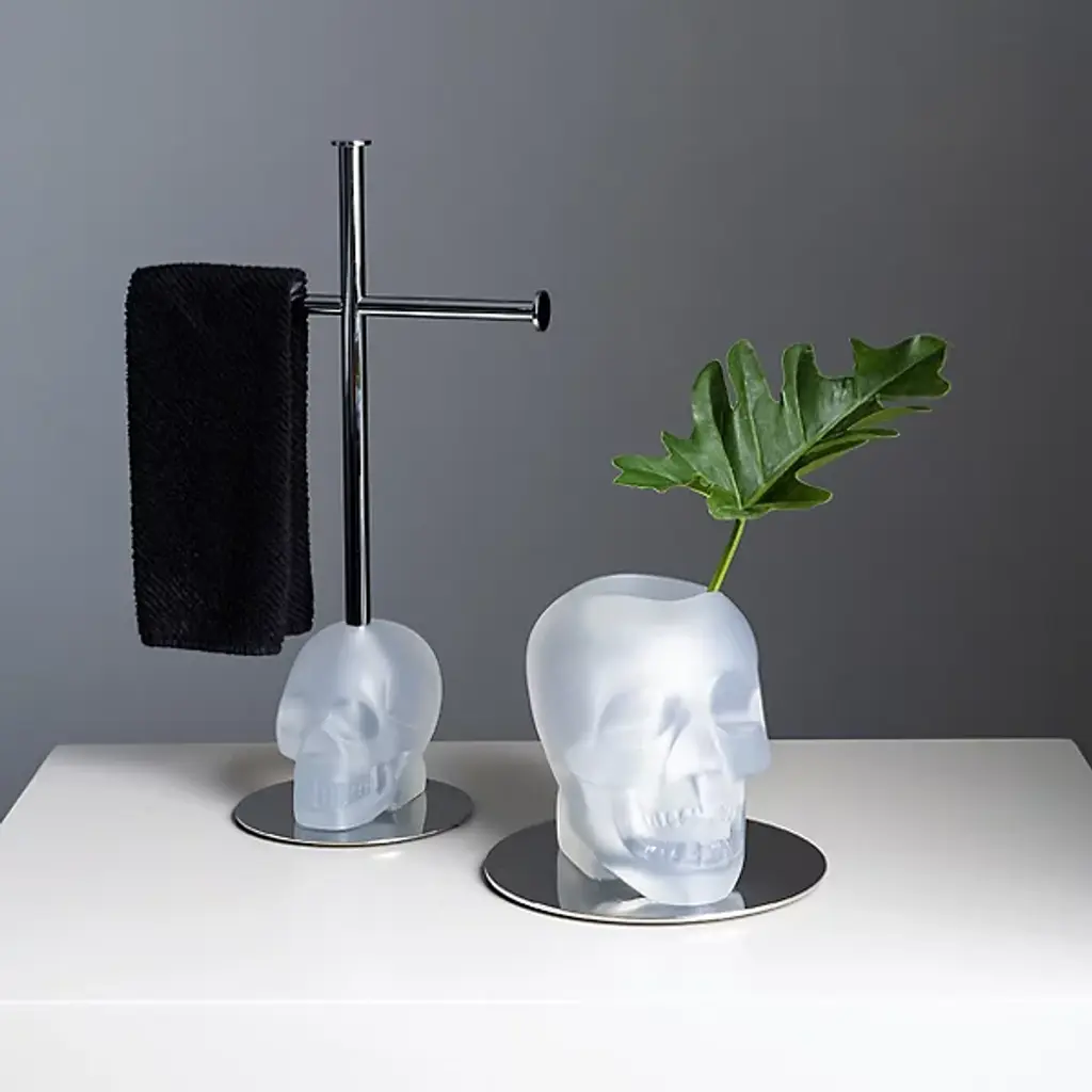 The Cranium Vase from Vallvé adds a modern and luxurious touch to any bathroom. Crafted from high-quality resin, this sleek and durable piece serves as both a decorative accent and a functional organizer. Its refined design blends elegance with practicality, making it a sophisticated addition to your space while elevating everyday decor.