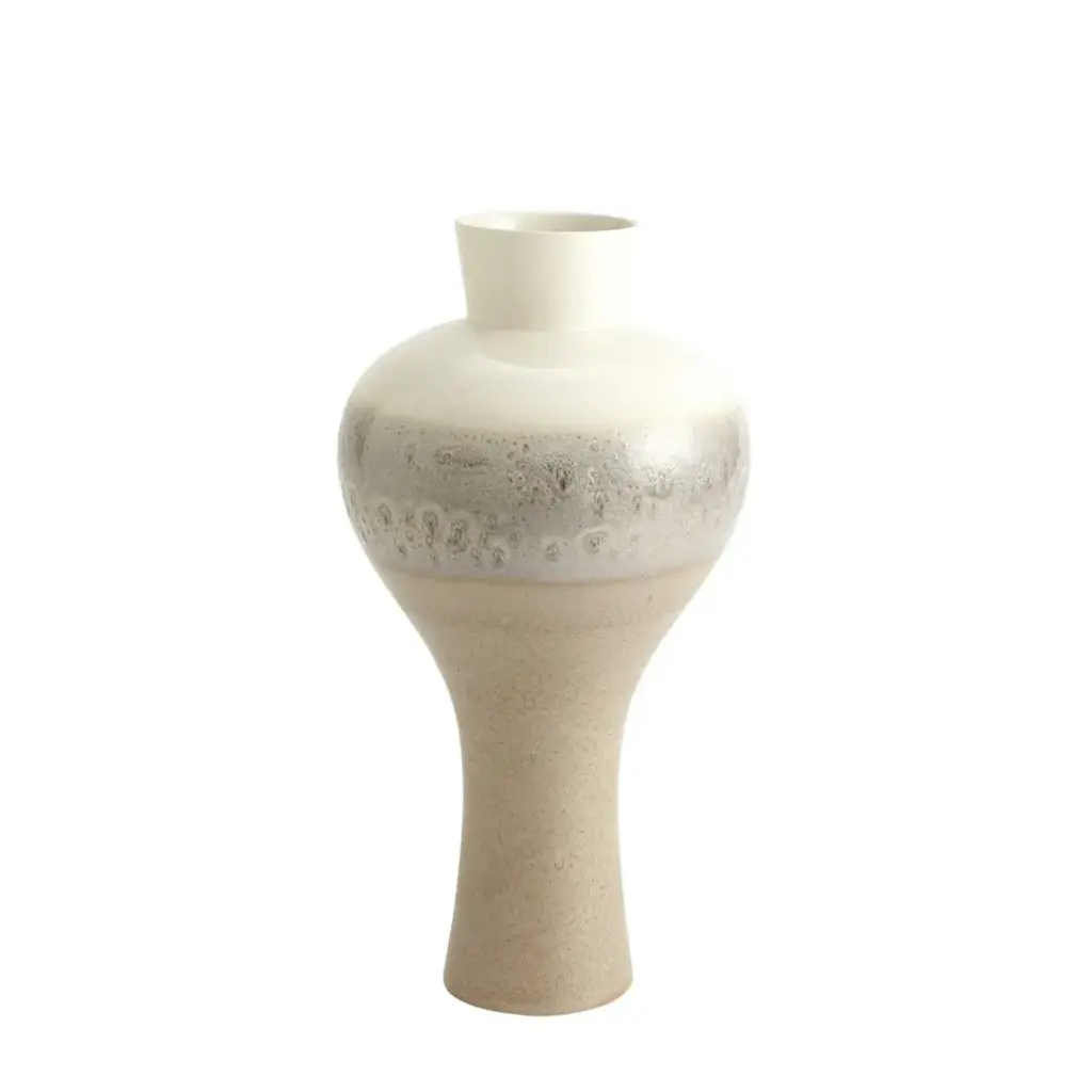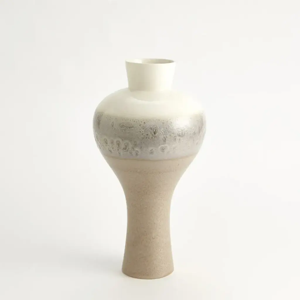 The Cream Rises Swell Vase is made of Portuguese slip cast ceramic with ivory and grey reactive glaze finishes. From a fashion forward perspective, Global Views offers accessories, furniture, statement lighting, and an assortment of rugs and mirrors to add beauty and joy to your home.