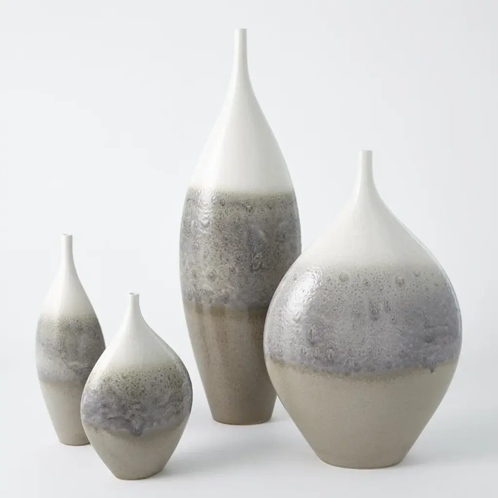 Shimmering neutrals give way to cool, creamy ivory on our Cream Rises vase. The reactive glaze crackles and shines over the softly curved teardrop shape.