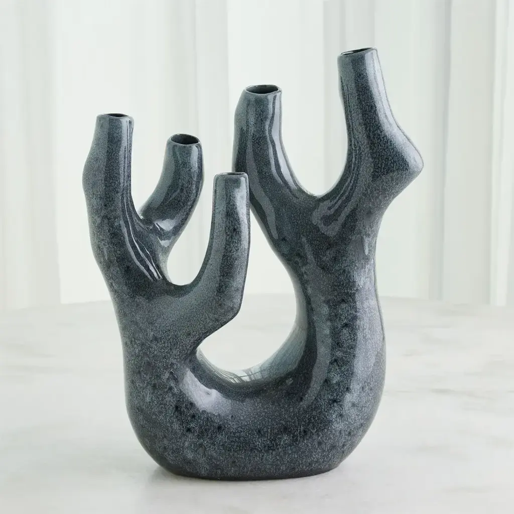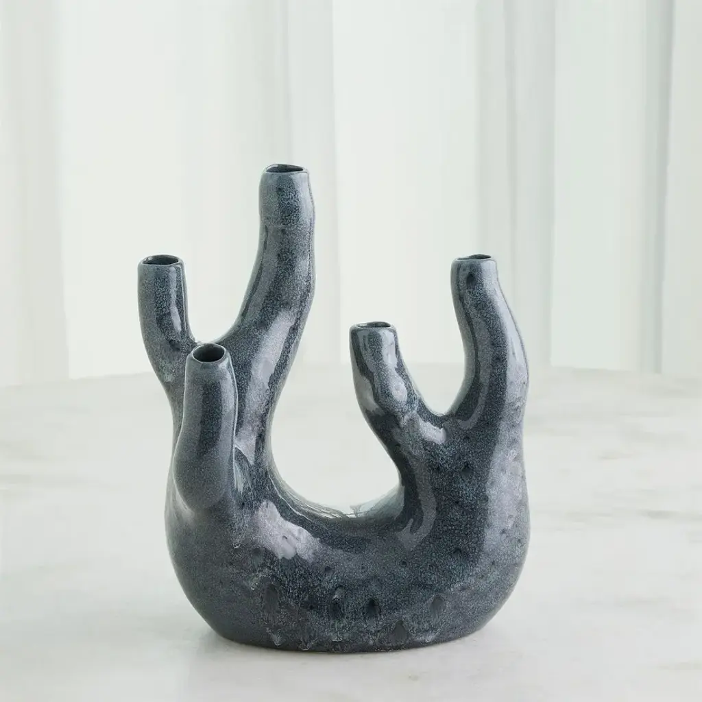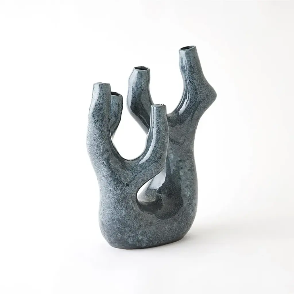 Crafted from slip-molded Portuguese ceramic, the Creation Vases evoke the graceful silhouette of coral reefs, boasting a handcrafted design and adorned with a stunning reactive blue finish. From a fashion forward perspective, Global Views offers accessories, furniture, statement lighting, and an assortment of rugs and mirrors to add beauty and joy to your home.