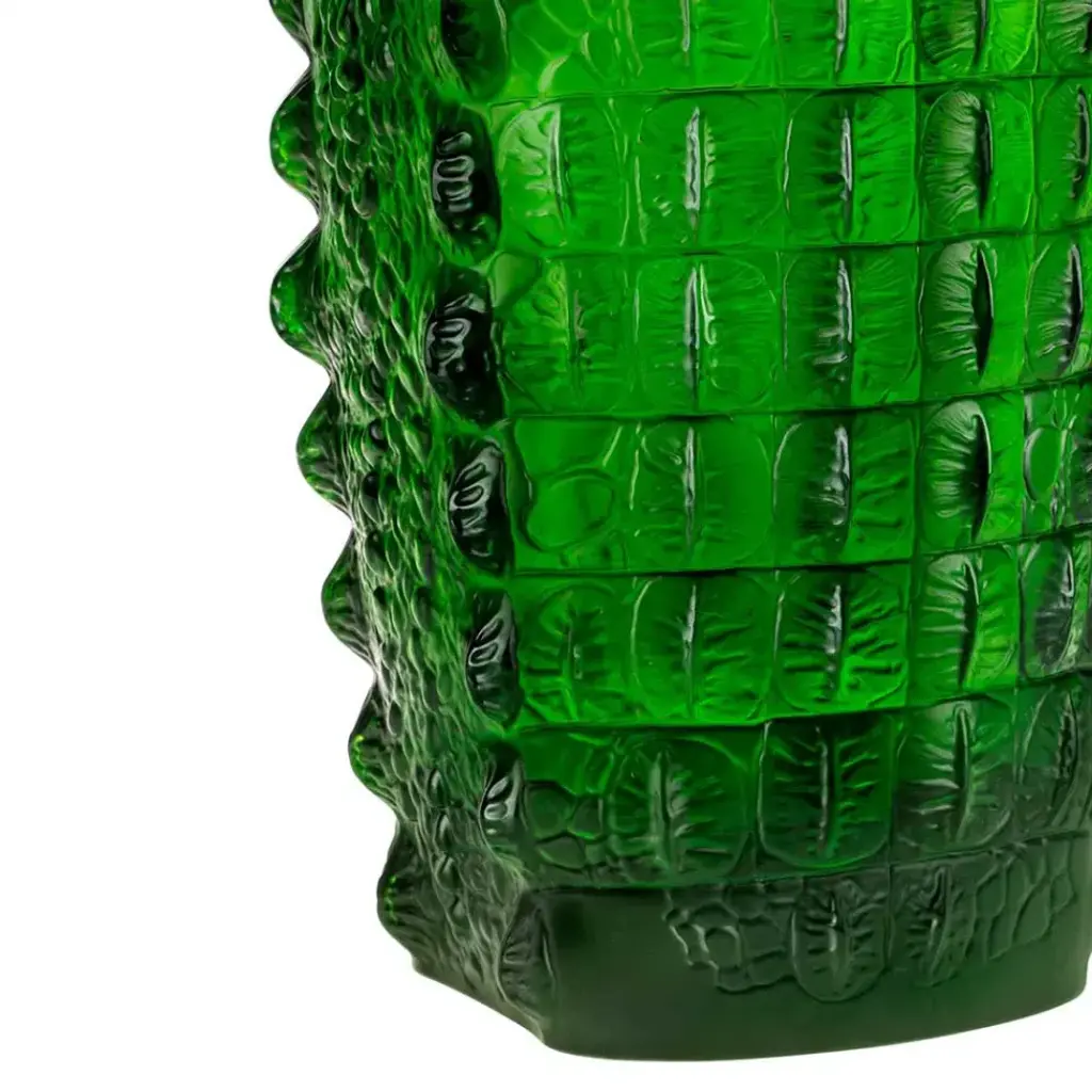 Impressive and sculptural, the Crocodile motif captures all the graphic power of this fearsome animal. Trained as a jeweler at the Ecole des Arts Decoratifs in Paris in the late 1880's, Rene Lalique gained recognition as an independent designer for some of the era's great jewelry houses including Cartier and Boucheron. Eventually, he turned to glassmaking, and his techniques were a triumph for the Art Deco movement. Every piece of Lalique is finely detailed and produced by hand in Alsace, France.