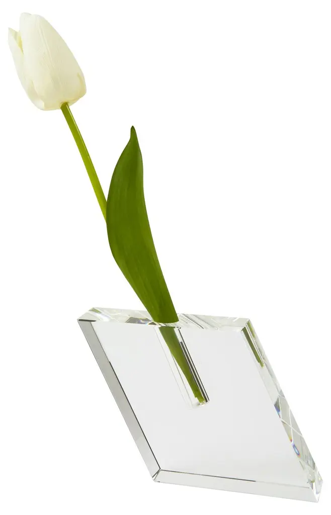 A sparkling accent on its own, this rhombus-shape bud vase is even more enchanting when it's holding a bloom.