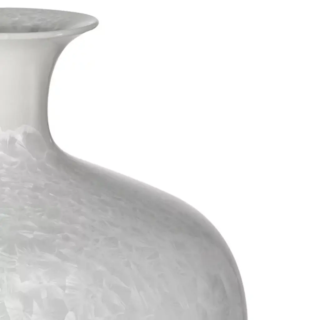 The Crystalline Vase from Currey & Company offers a dynamic, artistic presence to interiors. A classically curved porcelain vase with a round body, narrow neck, and flaring mouth, it features a rich, heat-reactive glaze. The glaze creates a crystallized crackle pattern when baked in the kiln, giving each vase a dramatic, distinctive character.