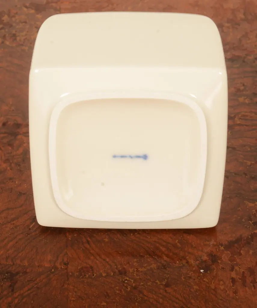 Cube-shaped white porcelain with glossy glaze, designed by Trude Petri in 1951.