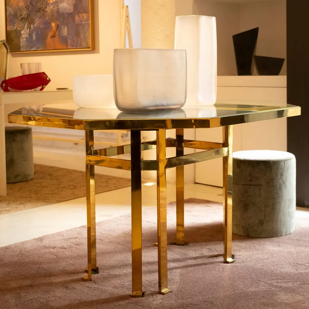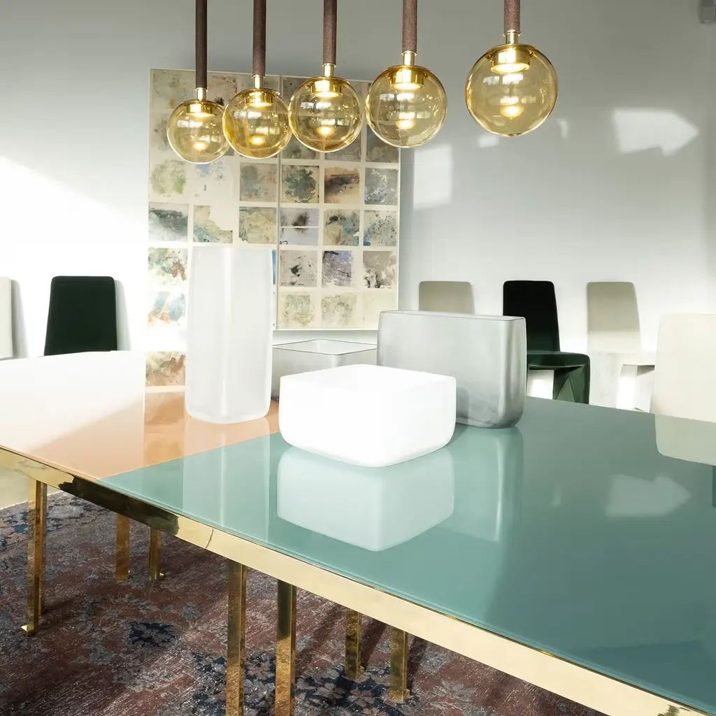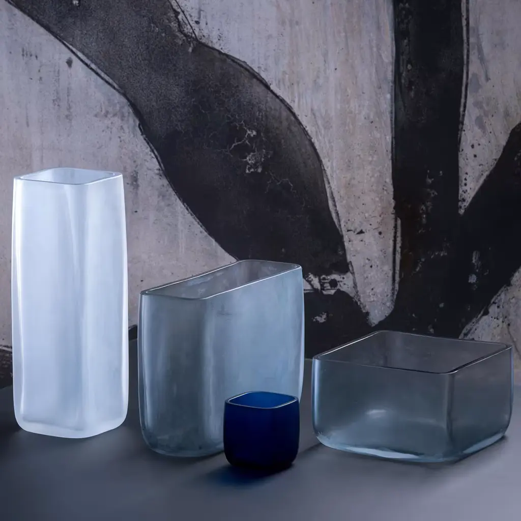 Designed by LPKW, this vase is part of a collection called Cubes that interprets geometric shapes, creating a series of home decor objects that are versatile and elegant. This piece, distinctive for its round corners and tall surface was crafted of Murano glass, mouth-blown by expert glassmakers in a sophisticated tinted coloration. This piece can be customized in the 21 hues in Purho's collection.