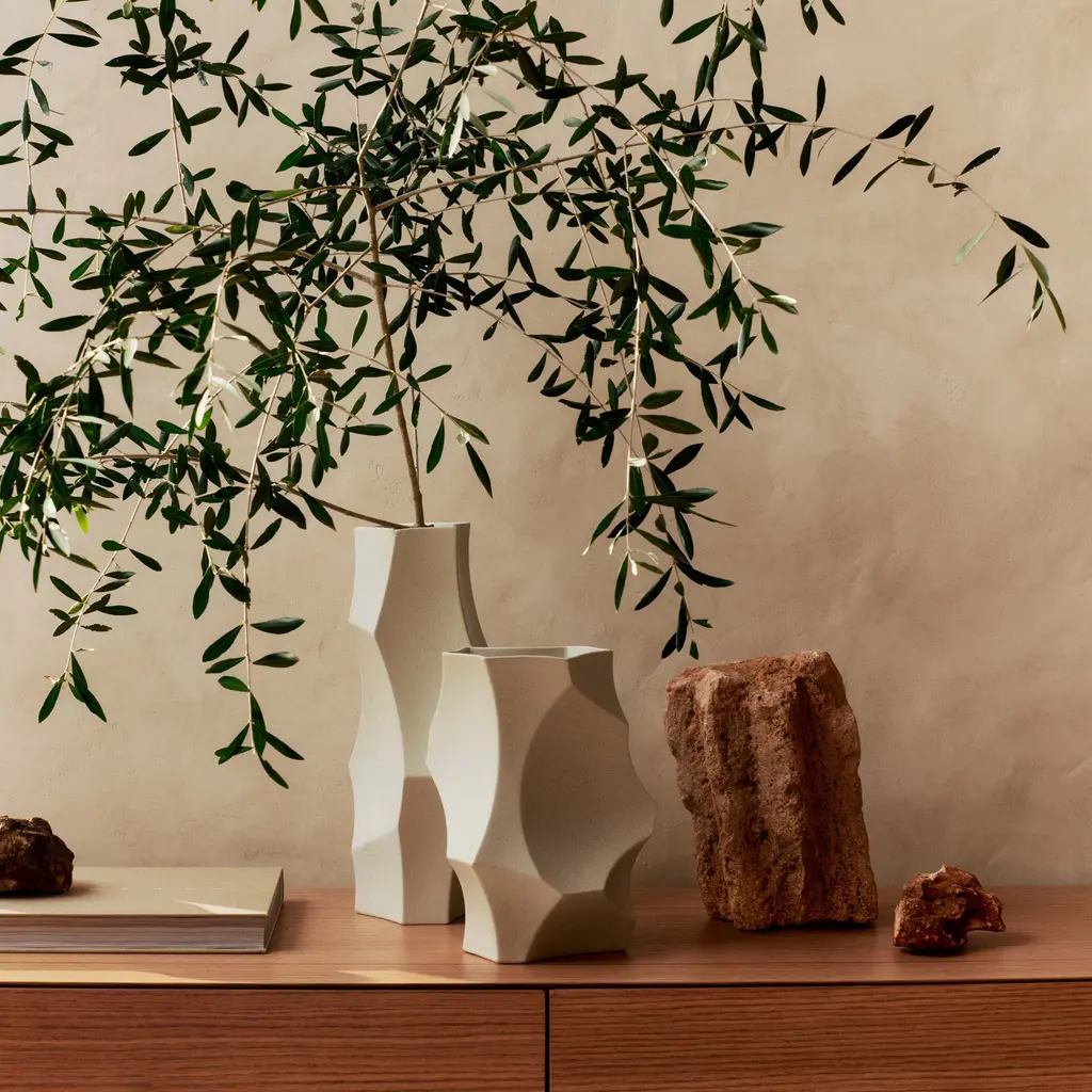 The Cueva Vase from Ferm Living, a sculptural masterpiece, is inspired by the breathtaking beauty of cave formations. Its organic curves and textures, crafted from ceramic with a glazed finish, add unique character to any interior. The solid, substantial feel and smooth, reflective surface make it a stunning addition to your home decor. Highlights