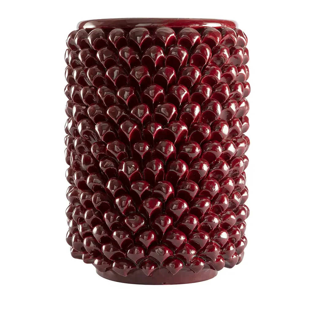 In a rich Bordeaux tone, this cylindrical vase makes a bold statement with its unique charm. Its sleek silhouette and glossy finish exude an air of luxury and sophistication, effortlessly catching the eye. Crafted with meticulous attention to detail, it becomes a focal point, enhancing the aesthetic of any space it occupies. Ideal for showcasing fresh blooms, this Bordeaux vase adds an element of refinement and elegance to any floral arrangement, making it a standout piece in home decor.