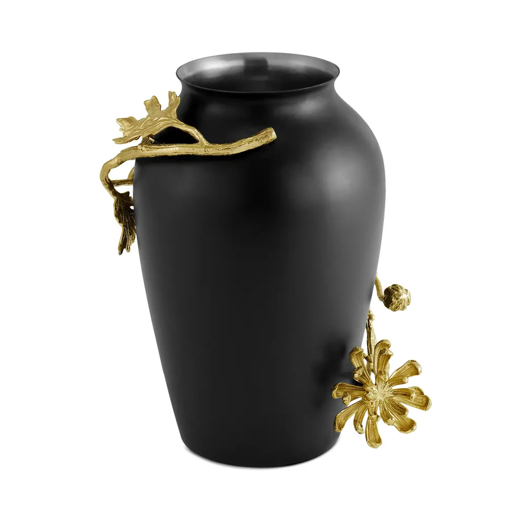 During the Victorian era, Dahlias were regarded as symbols of love and devotion. Michael Aram's Dahlia Collection captures this sense of romance by portraying the flower's interconnected petals in goldtone to emphasize their symmetry and spiraling pattern. In some pieces, Michael has chosen to contrast the radiant blooms against black granite and enameled stainless steel, evoking a mysterious sensuality.