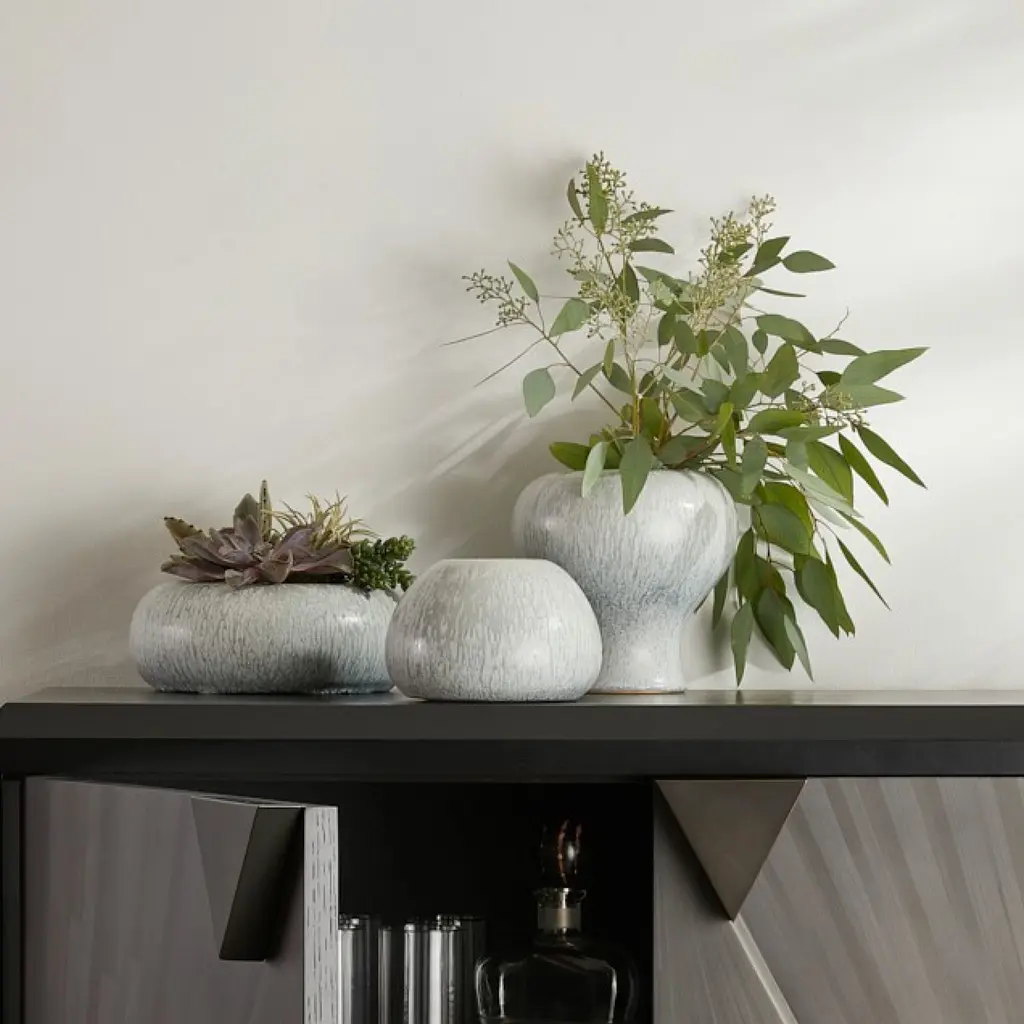 Curved Lines And Pebble Shapes Lend Natural Charm To Our Ceramic Vases. Glazed In An Icy Morn Finish, They Add A Spa-like Serenity To Any Space. Finish Will Vary.