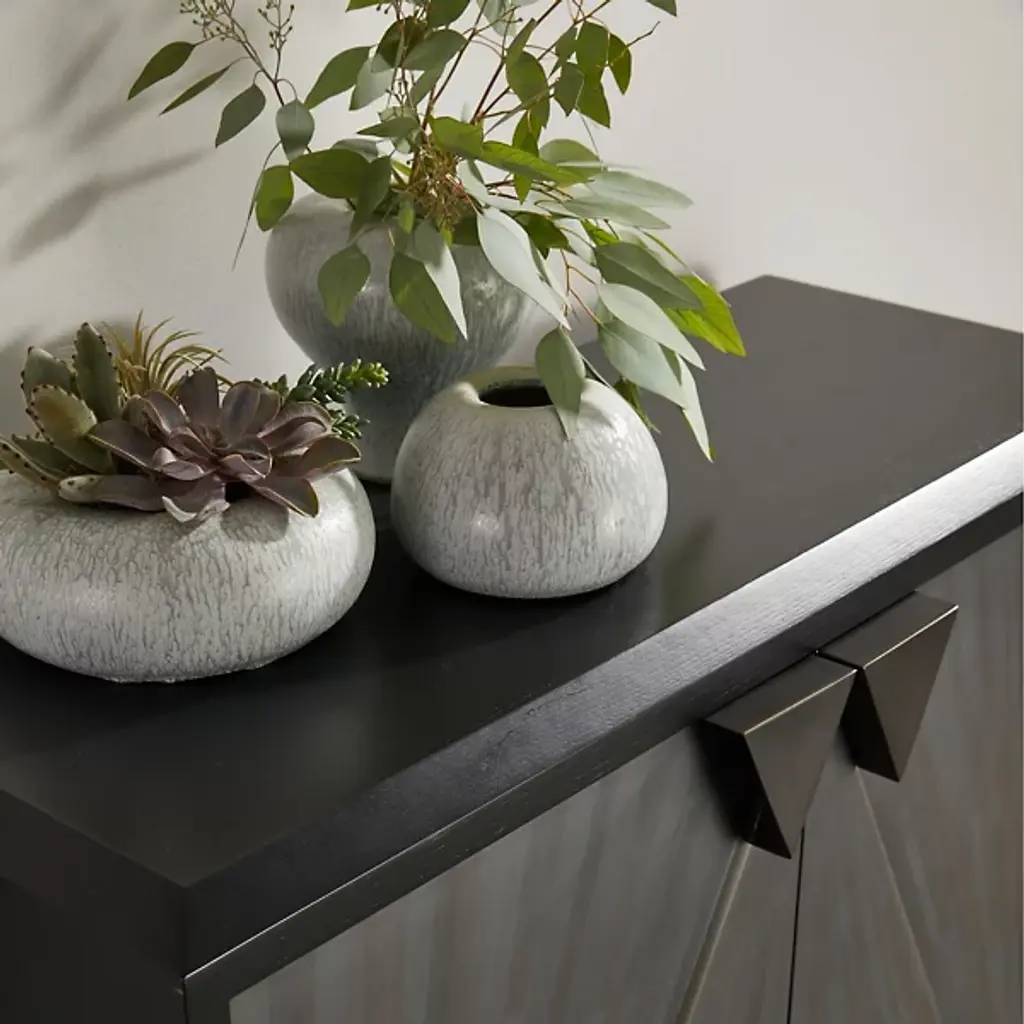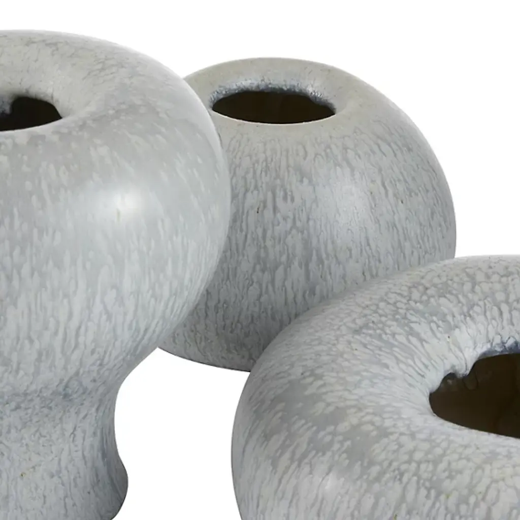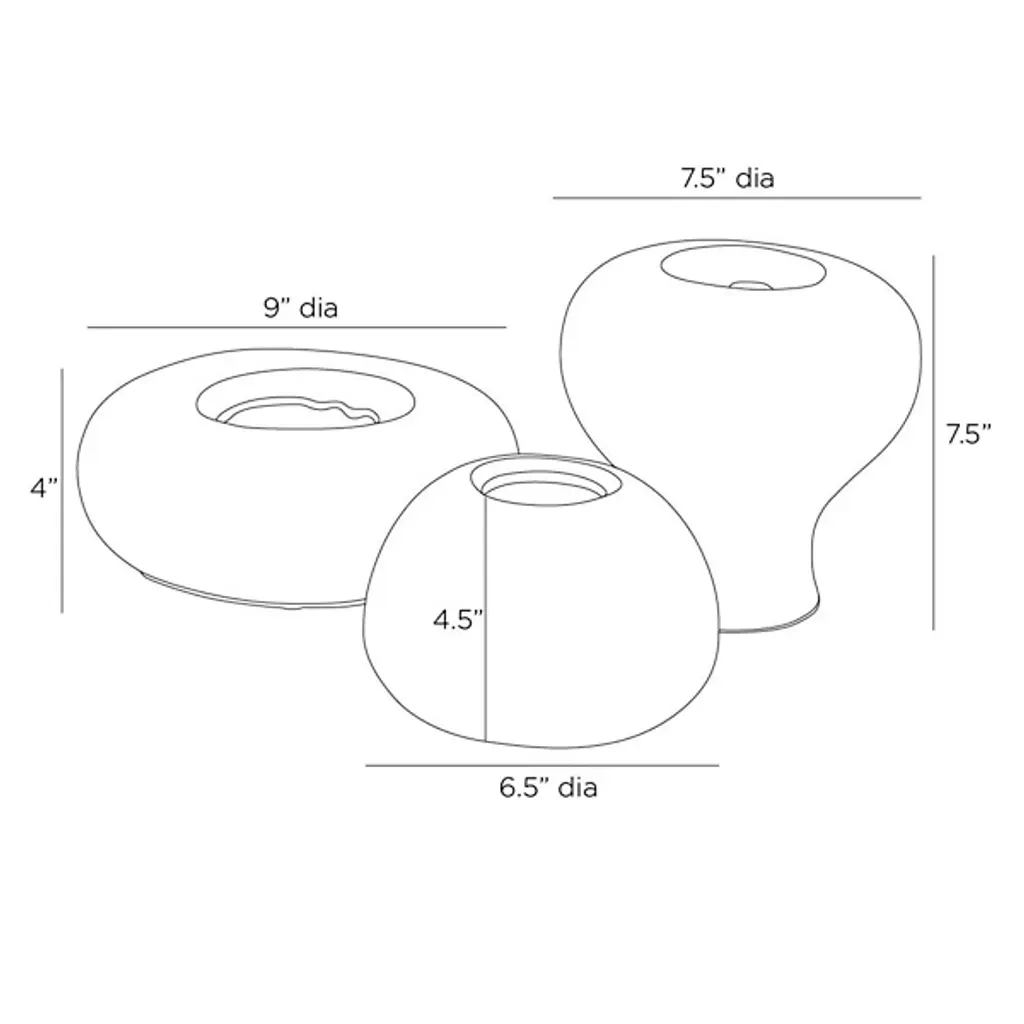 The Dandy Vases, Set of 3 from Arteriors, are an elegant means of displaying your greenery. The vases in this set are made of ceramic and feature a watertight construction. Each piece is distinctive, showing variations in its finish. These pieces give your décor the relaxing spa vibe, showcasing pebble shapes, curved lines, and a lovely glaze.