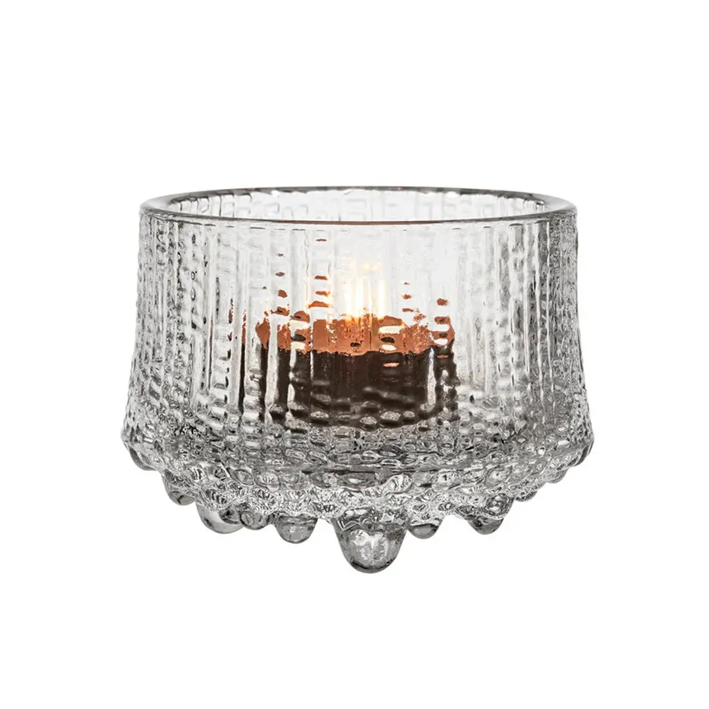 A small, domed vase expertly mouth-blown from coloured glass.