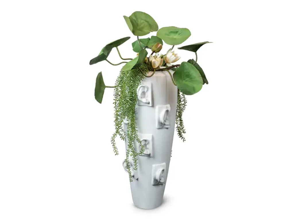 David Ears is a floral composition on a ceramic vase with artificial flowers, created by floral designers. Ideal for interior decoration, wedding and event preparation, home decor. Available with different artificial plants.PRODUCT CODES:1142610.60: Obice David Ears with aloe1142611.60: Obice David Ears with lotus sedum1142612.60: Obice David Ears with lotus platycerum