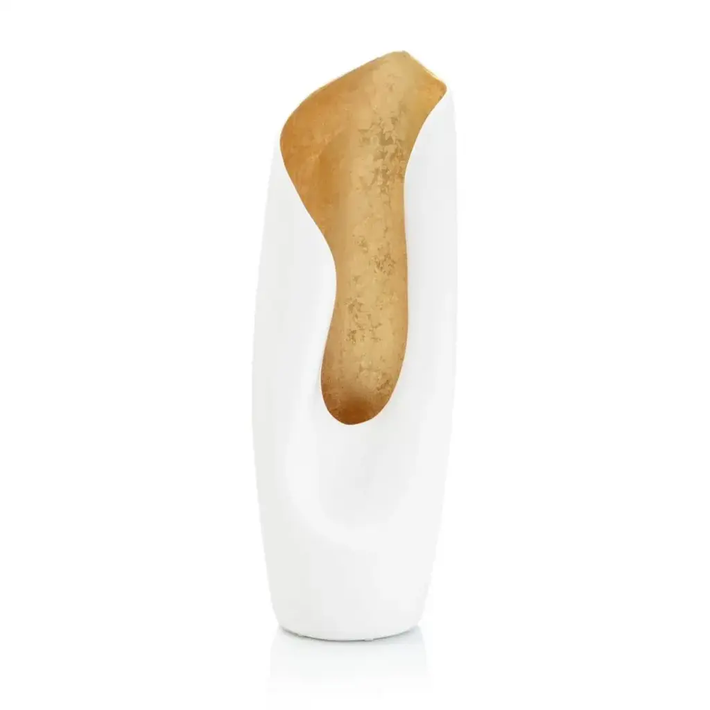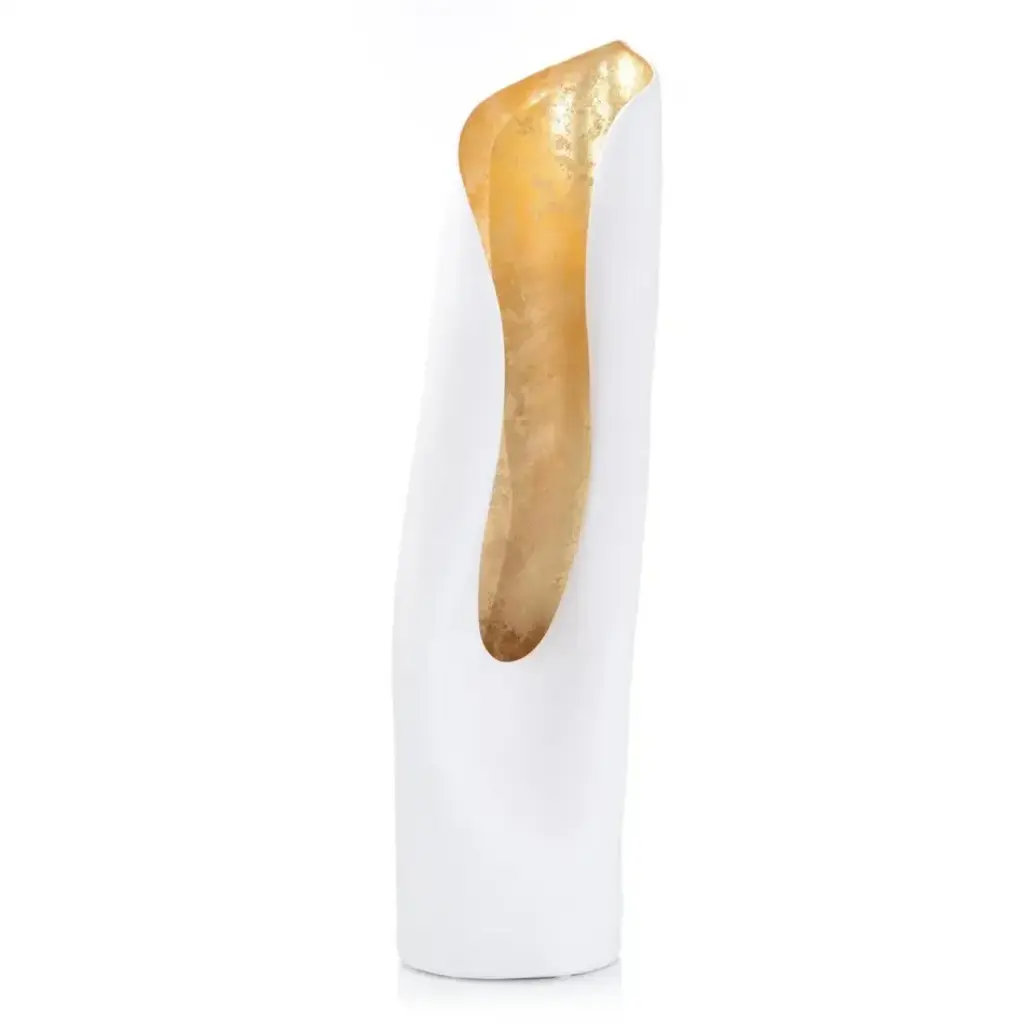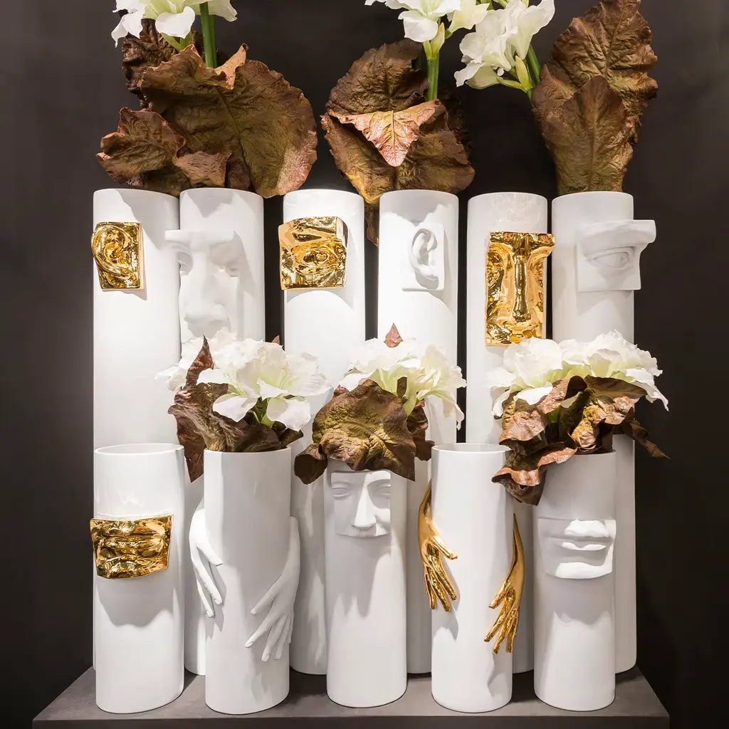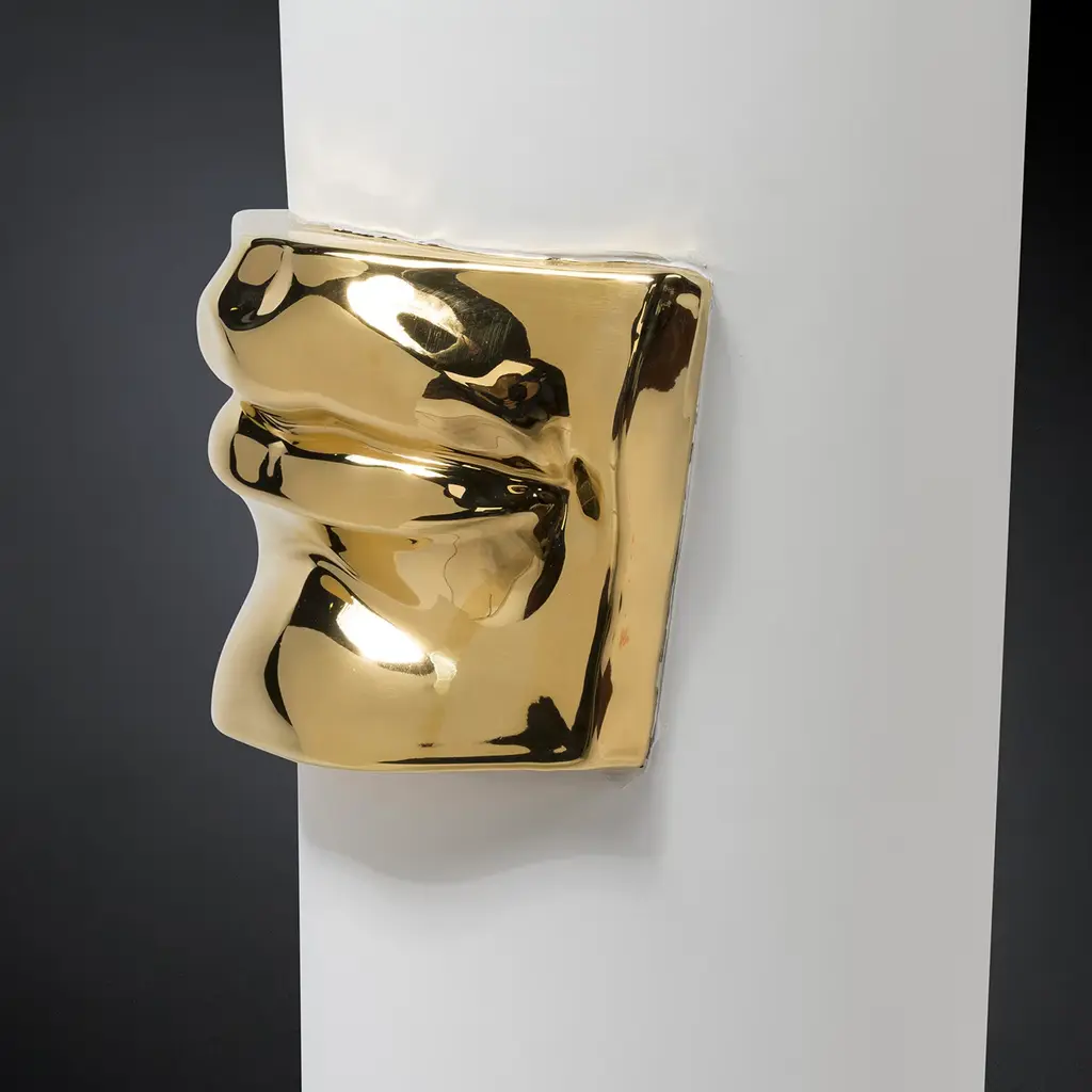 Revealing the subtle elegance of Italian art and handicraft, this stunning vase boasts an elegant and refined flair. Marked by a sleek cylindrical silhouette, it is masterfully handcrafted of white ceramic and features a magnificent low relief depicting Michelangelo's David lips plated in 24k gold.
