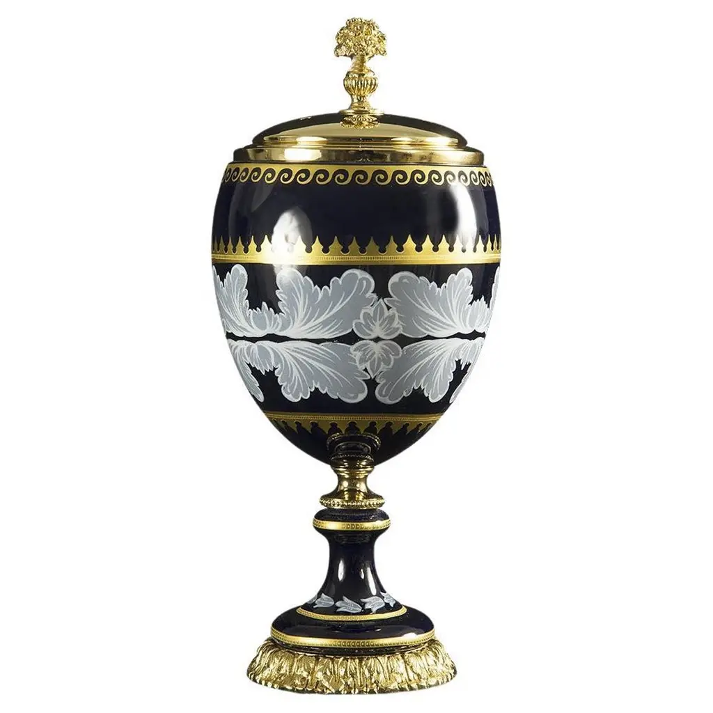 Decoration Vase 18" H Blue And Gold - Size: 7"l X 9"w X 18"h.