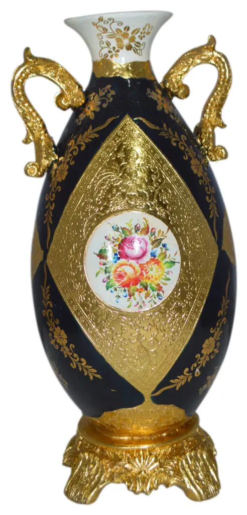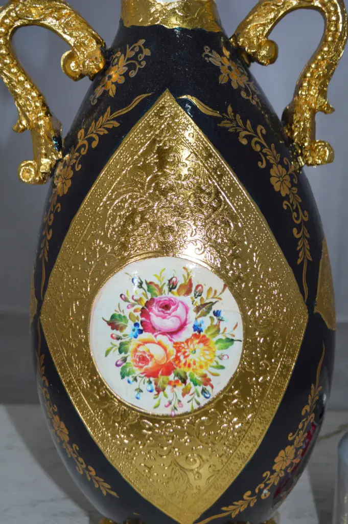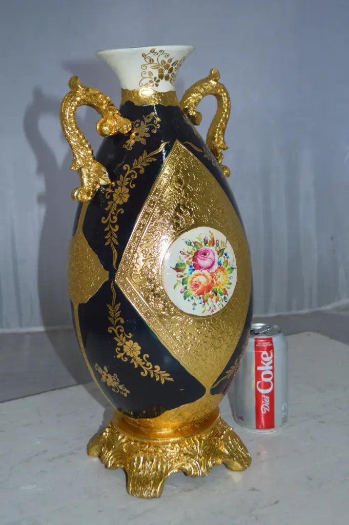 A beautiful large size Decoration Vase (French Vase replica) with Blue, White Gold and Pink colors, may be sold in pairs if available. Note that this vase is not made of porcelain. This vase can be a great addition to any area of the home, office or patio. Size: 7"L x 9"W x 18"H. Weight is: 5Lb
