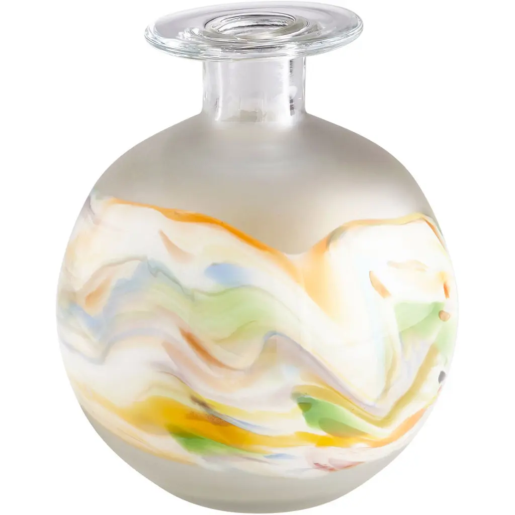 A white splatter glass vase sounds like a stunning piece of decor! The combination of white glass with splatters of color creates a visually striking and unique effect. Splatter glass often has an artistic and almost playful quality, as each piece is different due to the random patterns created during the splattering process. This type of vase can serve as a beautiful centerpiece for a table or mantelpiece, adding a touch of modern elegance to any room. It could complement a variety of interior styles, from minimalist to eclectic, depending on the size and shape of the vase. You could use it to display fresh flowers, dried arrangements, or even as a standalone decorative piece. Its versatile design makes it a great choice for adding character and charm to your home decor.