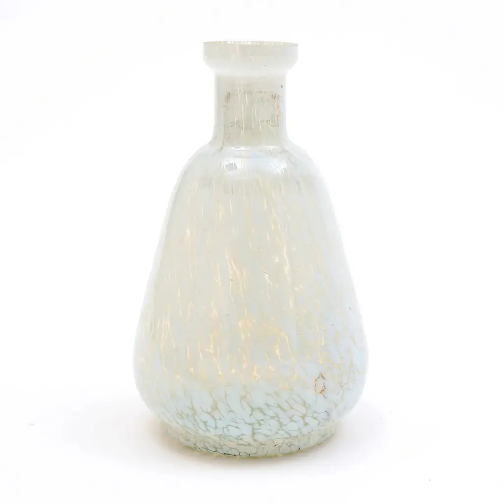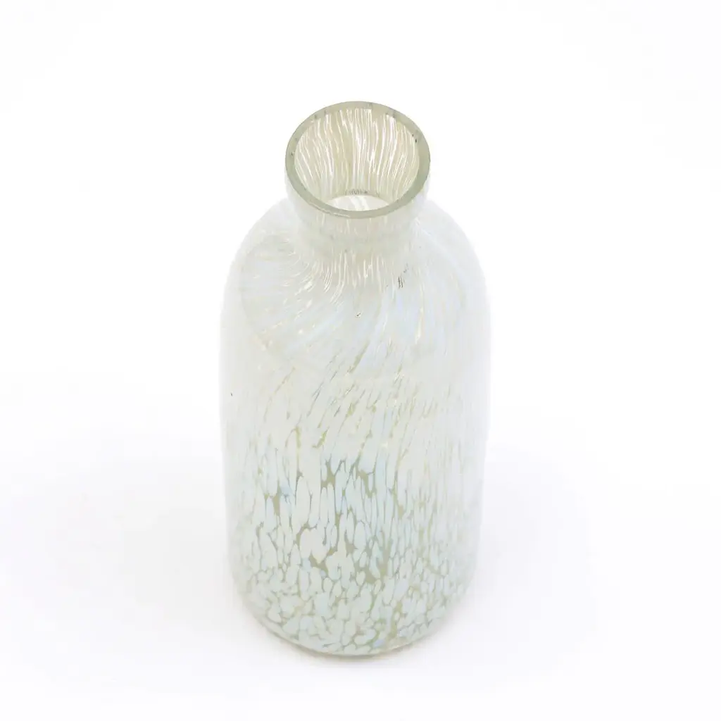A white splatter glass vase sounds like a stunning piece of decor! The combination of white glass with splatters of color creates a visually striking and unique effect. Splatter glass often has an artistic and almost playful quality, as each piece is different due to the random patterns created during the splattering process. This type of vase can serve as a beautiful centerpiece for a table or mantelpiece, adding a touch of modern elegance to any room. It could complement a variety of interior styles, from minimalist to eclectic, depending on the size and shape of the vase. You could use it to display fresh flowers, dried arrangements, or even as a standalone decorative piece. Its versatile design makes it a great choice for adding character and charm to your home decor.