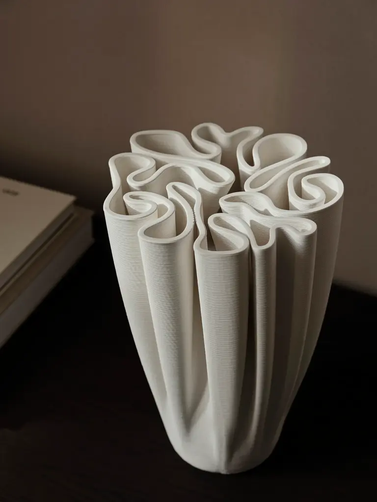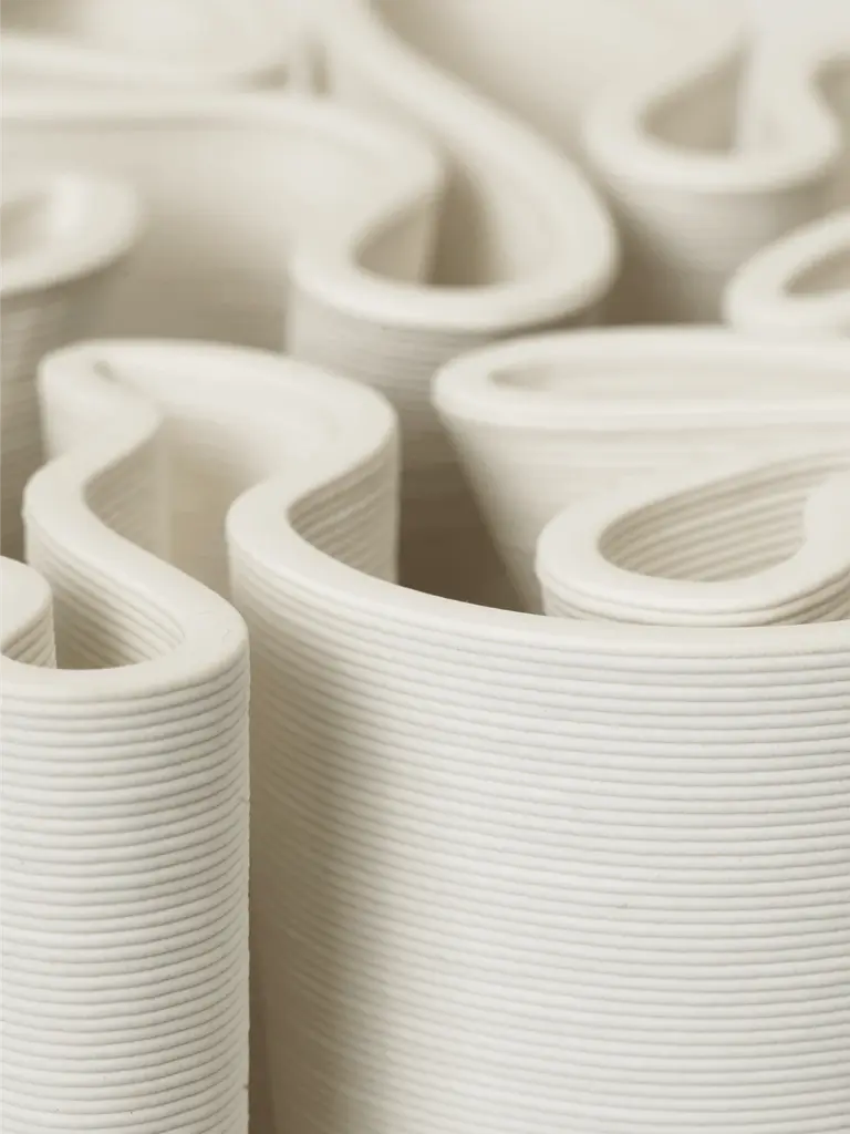 Echoing the elaborate patterns of a 'Dédales' or labyrinth, the Dedali Vase is a fusion of art and utility. Crafted from 3D-printed ceramic, its labyrinth-like top is not only aesthetically pleasing but also functional for arranging flowers in a voluminous, Ikebana-style.