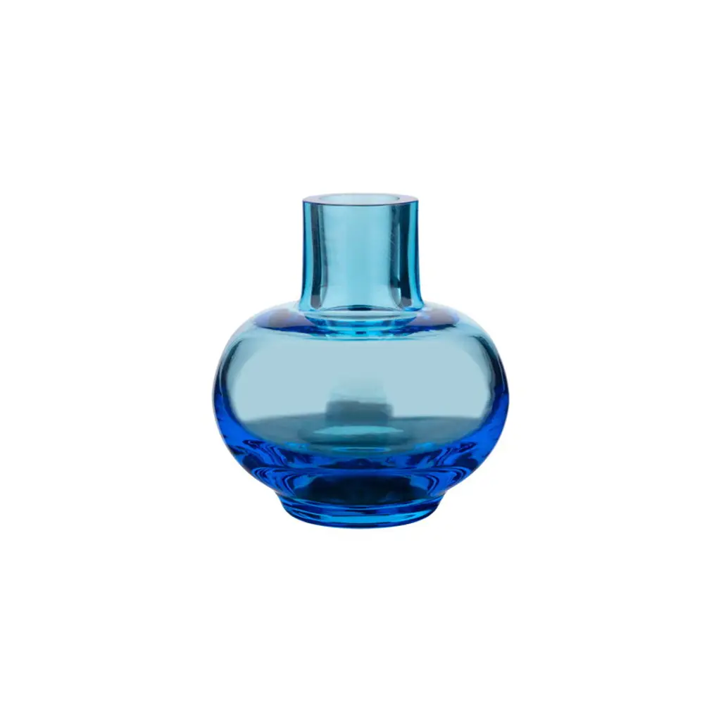 The Deep Sea Vase is a breezy, contemporary vessel that introduces a space to the serene ebb and flow of the ocean. This mouth-blown art glass piece showcases a rounded, asymmetric profile and a variety of gorgeous blue tones accented with hints of a Milky Grey finish near the rim. The inside of the piece is adorned in opulent silver tones, beautifully complementing the rich blue tones of the exterior.