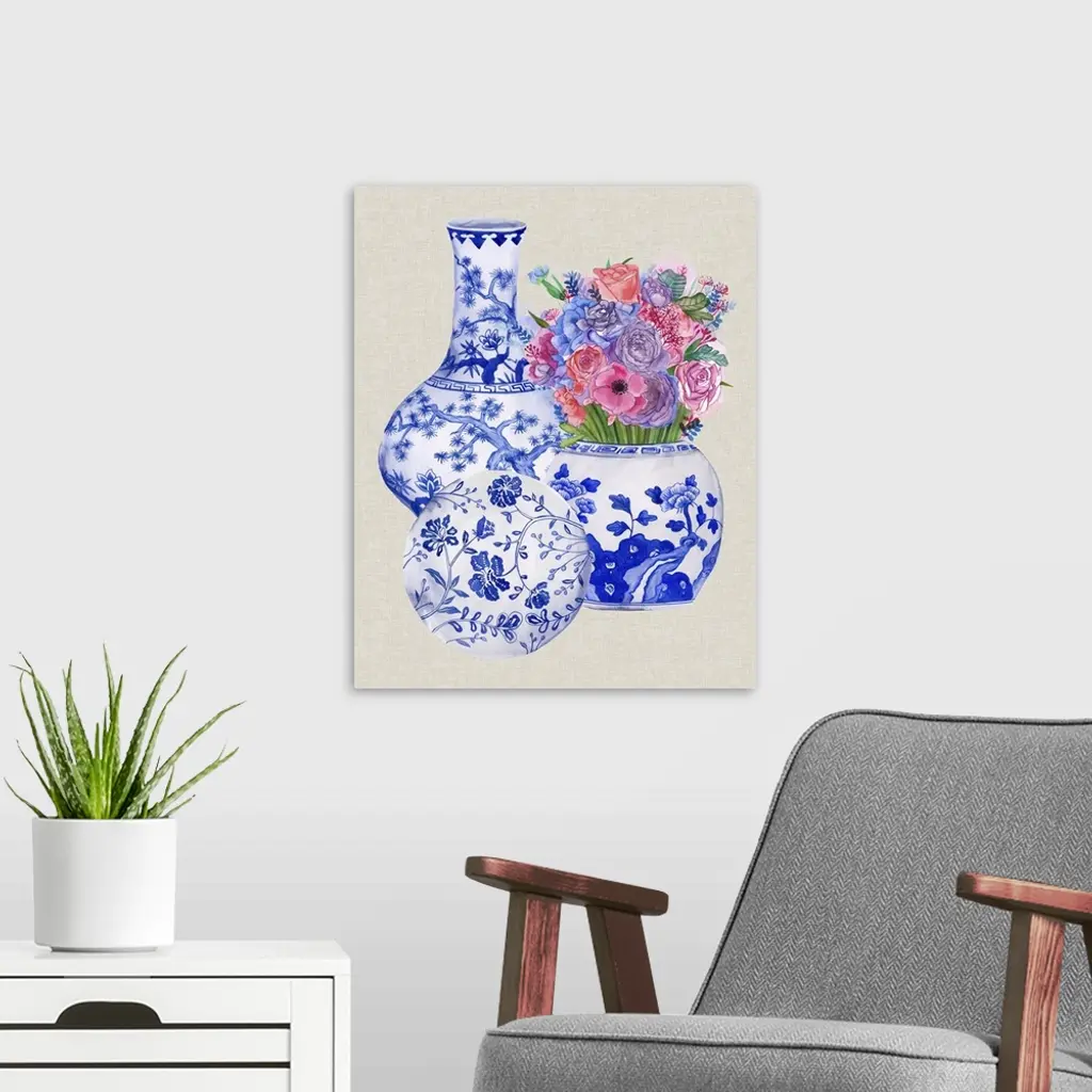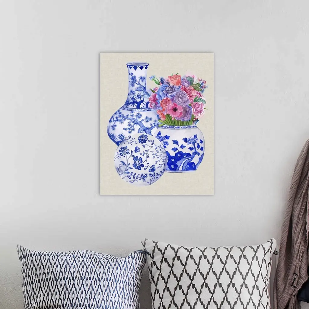 Delft Blue Vases II wall art for home and office decor. Discover canvas art prints, photos, mural, big canvas art and framed wall art in GreatBigCanvas.com's varied collections.