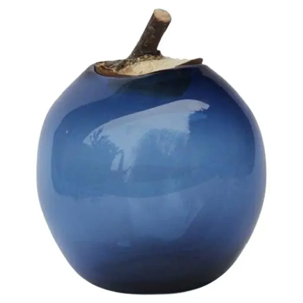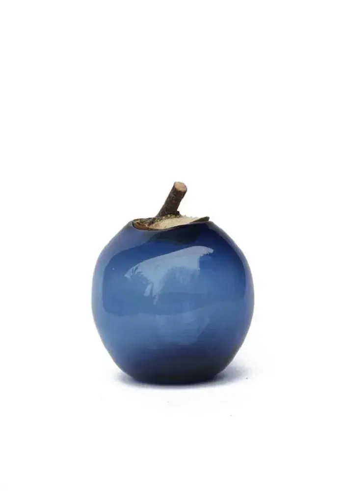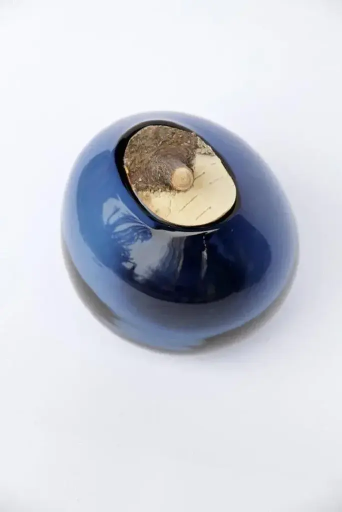 Denim blue branch bowl ii, pia wüstenberg. Dimensions: d 16-18 x h 20. Materials: glass, wood. Available in other colors. A playful jar, with a lid made from a branch stub following the curvature of the glass. Branch bowls are blown without a mould: their outer rim is originally the inside of the glass bubble, thus their round and soft edges, characteristic of this artistic process. Handmade in europe: freehand blown glass (england), wood (finland). The materials then come to our warehouse in north germany where they are fitted and assembled. this piece is attributed to the mentioned designer/maker. It has no attribution mark and no official proof of authenticity, however it is well documented in design history. I take full responsibility for any authenticity issues arising from misattribution