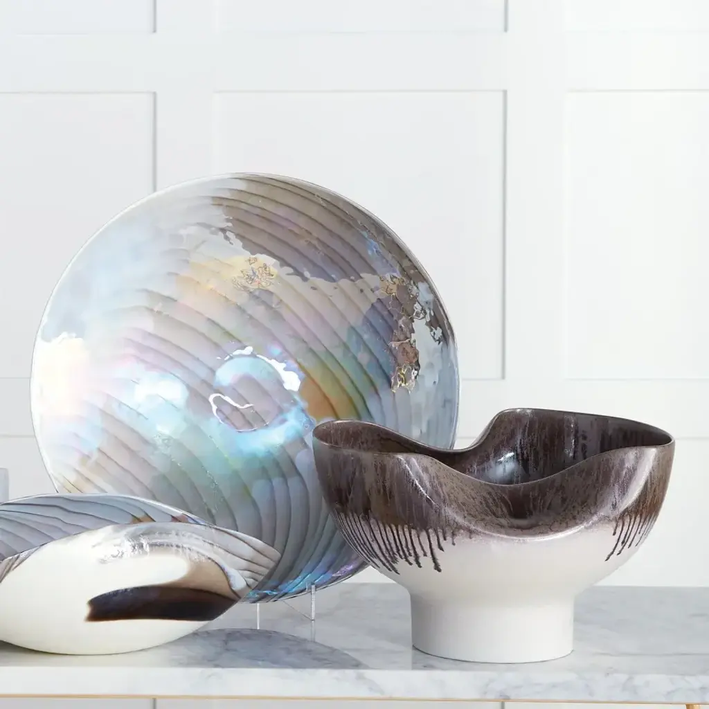 Made of Portuguese slip cast ceramic, the Dented Collection has a concaved design with ivory and grey reactive crackle glaze finishes. From a fashion forward perspective, Global Views offers accessories, furniture, statement lighting, and an assortment of rugs and mirrors to add beauty and joy to your home.