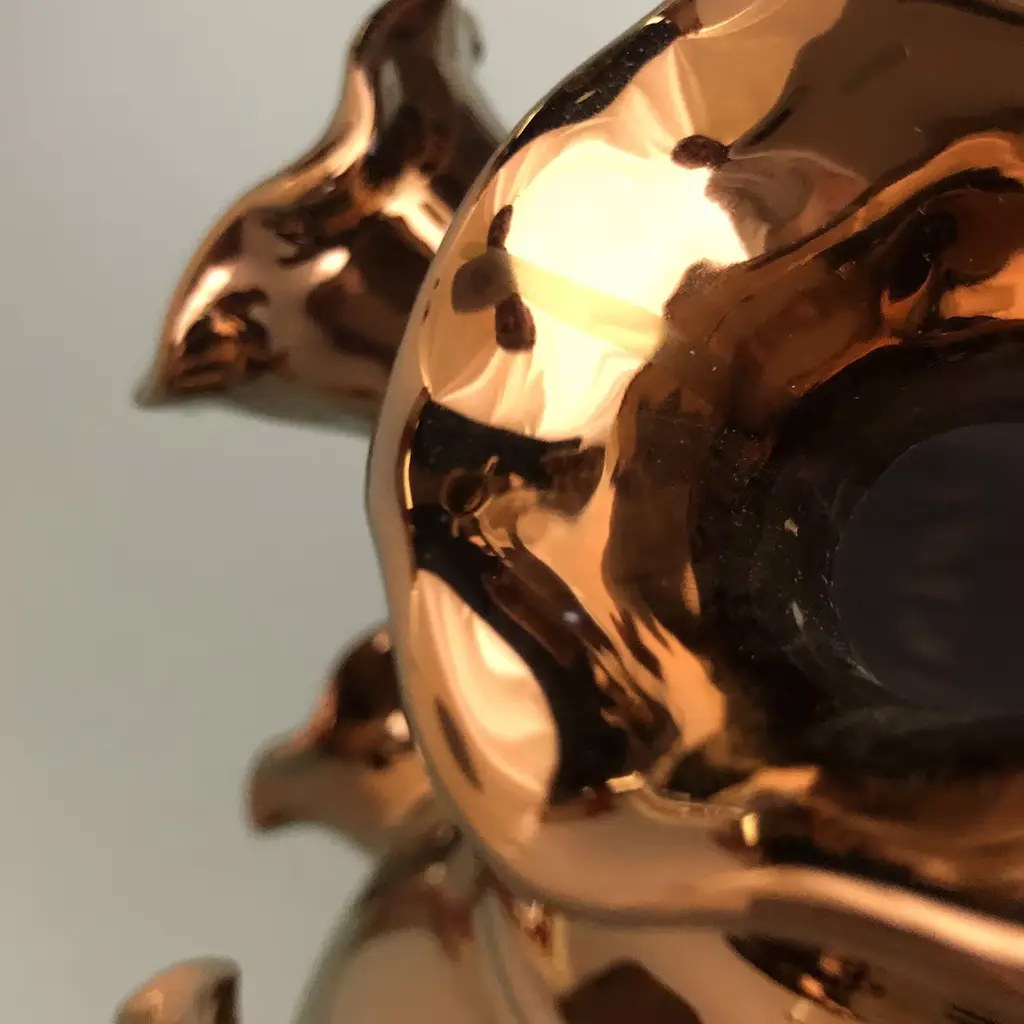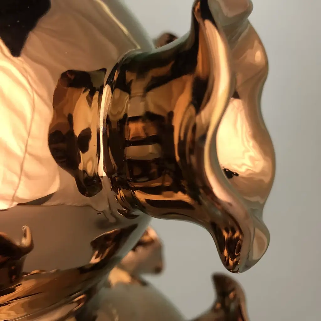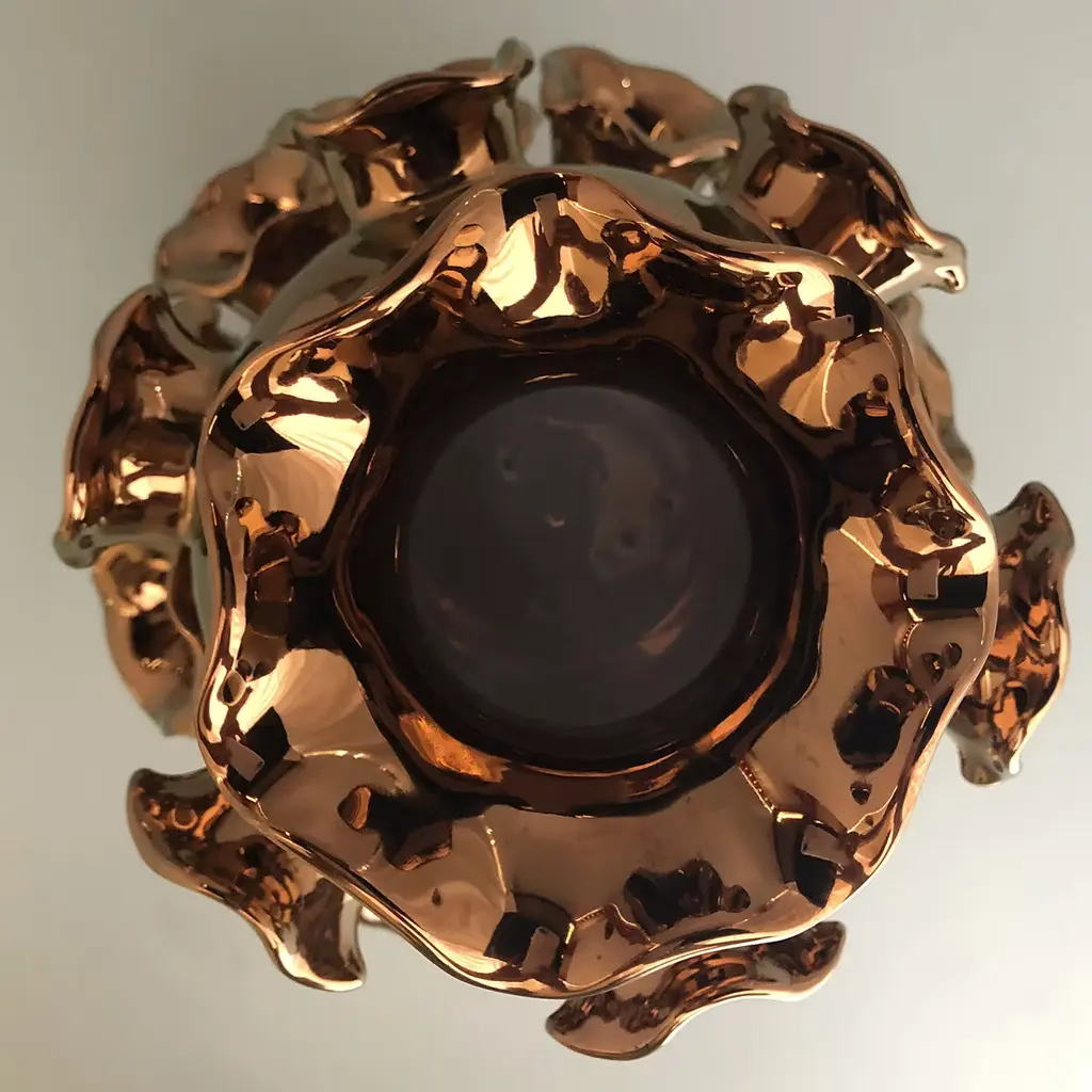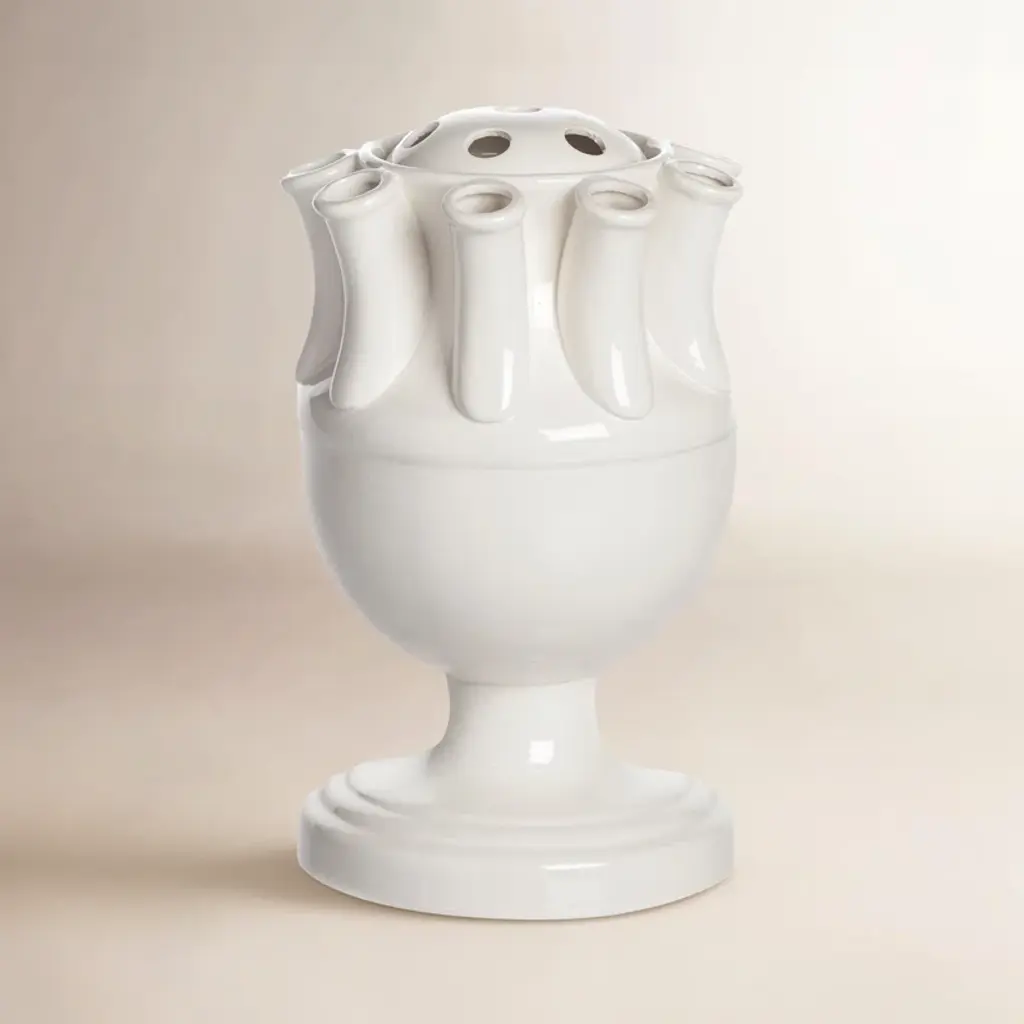 The Diciannove Bocche Vase is inspired by the first tulip vase in the Netherlands between the 18th and 19th centuries when the tulip became a symbol of nobility and prestige. The spectacular vase is handturned in white terracotta and finished in a bronze glaze, making a fine statement in your contemporary or classic style home.